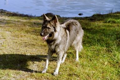 Ice ist, wie ich finde, ein umwerfender Hund, er hat sehr viel Charme, ist leichtführig trotzdem sehr wachsam, und verteidigt im Ernstfall durchaus seine Familie. Er hat den Team-Test und seine BH Prüfung, sowie eine Ausbildung zur VPG-Prüfung durchlaufen. Er ist sehr oft ausgestellt worden und belegte nur vordere Plätze. Er ist zudem ungeheuer liebenswert, umgänglich mit allen Menschen und Tieren, einfach ein Hund der Spaß macht. Ich finde es passt alles zusammen, seine ungewöhnliche Optik durch seine seltene silbergraue Farbe, und sein gutes Wesen. Ice hat ein super tolles Zuhause bekommen, zusammen mit Dakota, eine ebenfalls silbergraue Hündin, und auch Puma lebt in diesem kleinen Rudel. Imelda die am Anfang ein paar Schwierigkeiten mit Ice hatte, hat diese inzwischen super gemeistert und macht sich auch die mühe und geht mit allen zum Hundeplatz, ihre kleine Tochter führt Puma, und sie arbeitet mit Ice und Dakota. Bei den Spaziergängen mit den Hunden entstanden diese Fotos, die ich keinem vorenthalten möchte............. |