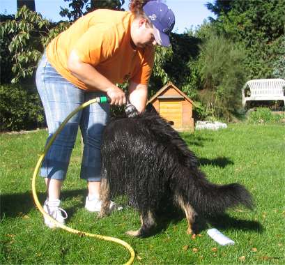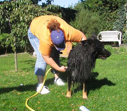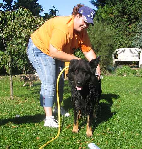 gerne gebadet aber..ganz besonders Niko liebt es gebadet zu werden, vor