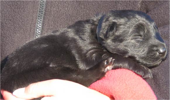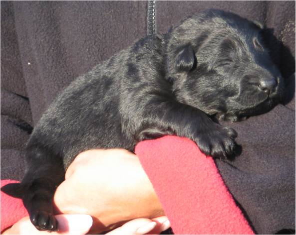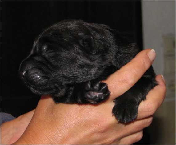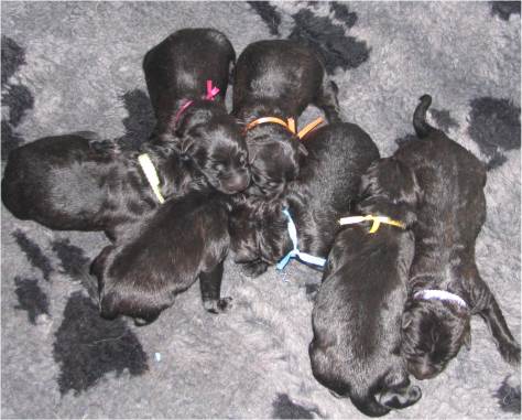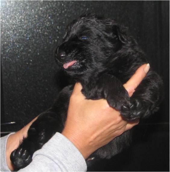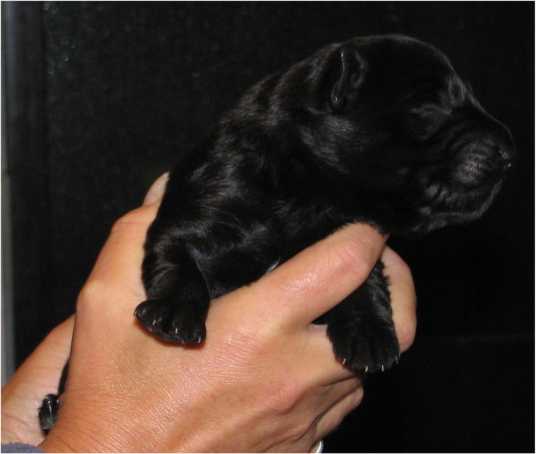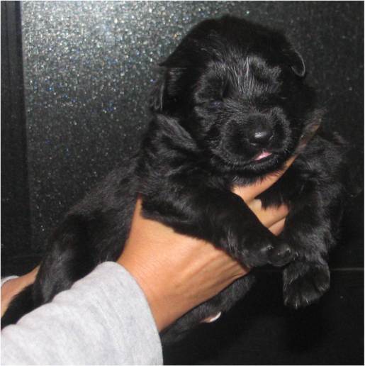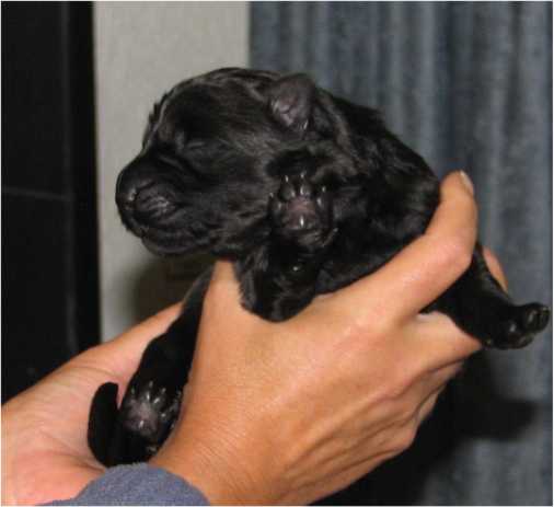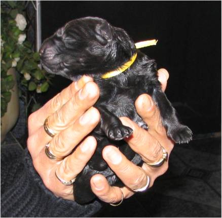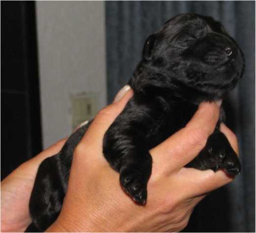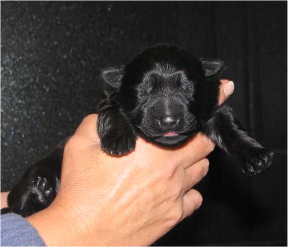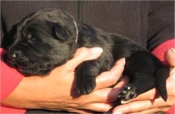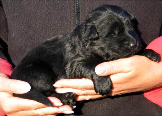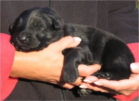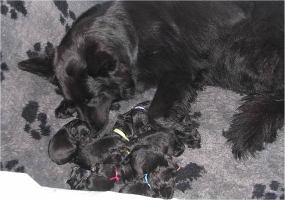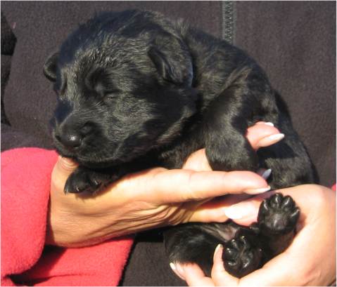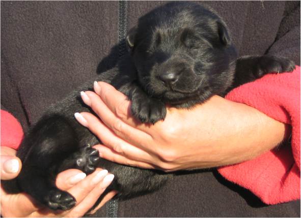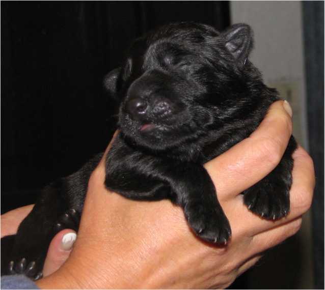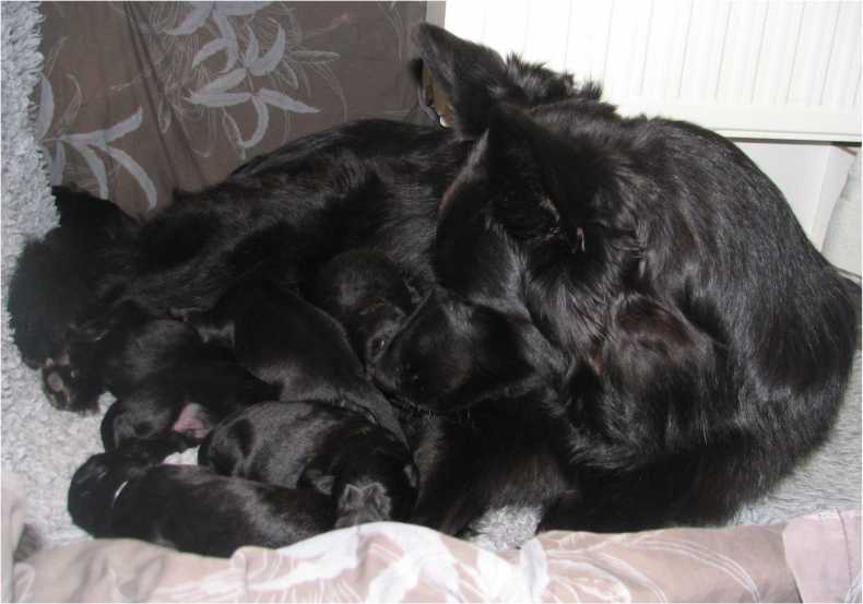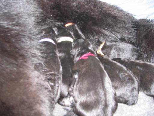 Jess hat uns ganz schön hingehalten (:-) Nachdem ich im Vorfeld fast 2 Nächte nicht geschlafen habe, und dann endlich wirklich müde war, hat Jess sich überlegt das es nun endlich losgehen könnte. Sie hat "mal eben" 7 Babys in nur 3 Stunden bekommen. Es sind 6 Rüden und nur eine Hündin, alle sind reinschwarz, und alle deutlich über 500 gramm schwer. (:-) Mehr über die Geburt könnt ihr unter Christel's Tagebuchseite lesen.