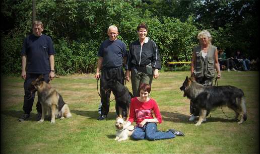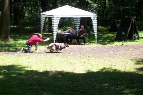 | Am 3. Juli 2004 fand wieder ein Hunderennen in Recklinghausen auf der Platzanlage des DVG MV König- Ludwig statt. Am Start natürlich Wotan und auch Jessy, leider war das Wetter mal regnerisch und mal sonnig, so das nicht alle Bilder was geworden sind. Jedenfalls hatten wir alle einen Heidenspaß, Herbert weniger, er ist mit Wotan lang in die Matsche gefallen und hat natürlich damit, für viel Spaß auf Seiten der Zuschauer gesorgt, er selbst, fand das sicherlich weniger witzig. Wotan hat sich aufgeführt wie ein Verrückter, er konnte es gar nicht erwarten das es endlich losgeht. Jessy Bilder sind allerdings nichts geworden, (ärgerlicher Weise) aber zumindestens von Wotan haben wir ein paar Fotos. | ||