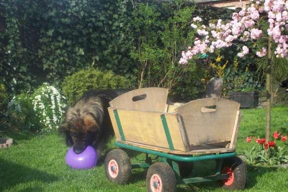 Wotan nimmt seine Aufgabe sehr ernst, er bewacht meine Tasche, natürlich auch seinen Ball |