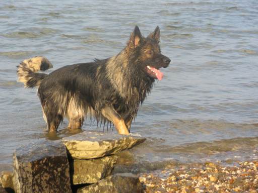 August 2004, der Sommer ist doch eindeutig die schönste Jahreszeit, Wotan schwimmt, taucht, und kann es gar nicht erwarten das man ihm sagt was er tun soll.