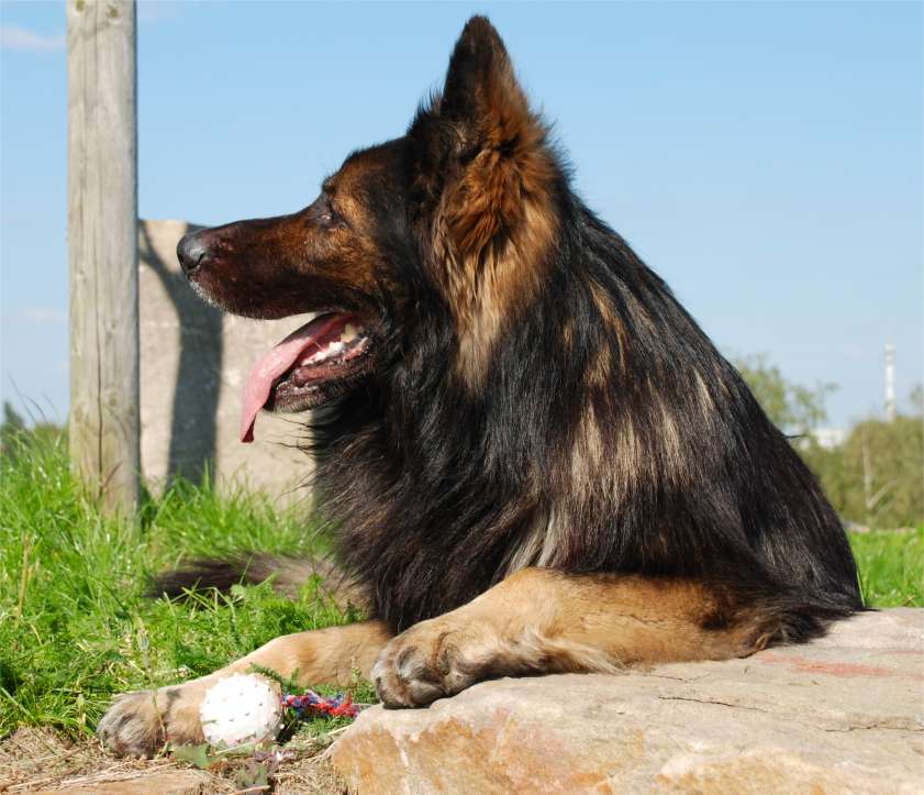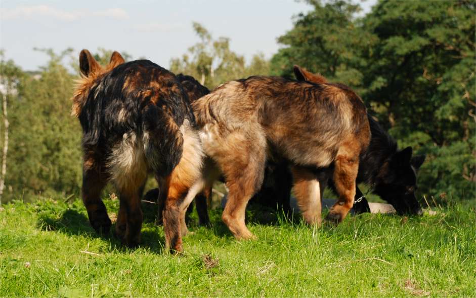 Er hat seinen Ball und findet sein Leben prima! Ein paar Tage später, kamen Karin und Bernd mit Kimon (Shandar-Merlin-Sohn) vorbei. kimon ist jetzt 8 Monate und die beiden halbstarken hatten einen tollen Nachmittag. beide verstanden sich auf Anhieb und tollten wie die verrückten durch den Garteb, wir haben zwar versucht, zwischen Kaffeetrinken und Lachen, Fotos zu machen, aber die meisten sind natürlich nicht wirklich was geworden.. Aber jede menge "fliegender popo`s konnte ich fotografiern, nur macht es keinen Sinn die hier zu zeigen :-) Aber ein paar Bilder hat bernd mir noch geschickt, so das wir zumindest ein paar Fotos haben von dem schönen Nachmittag im Garten!
