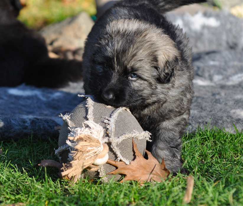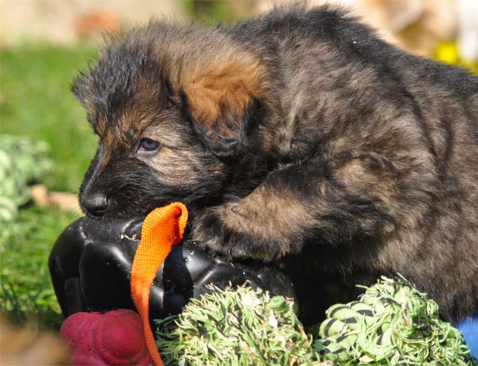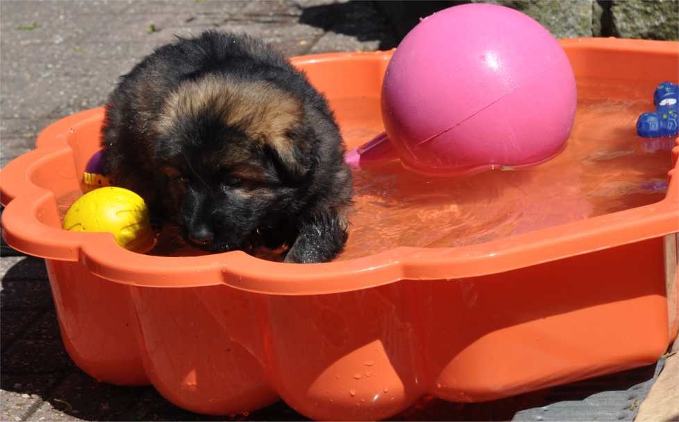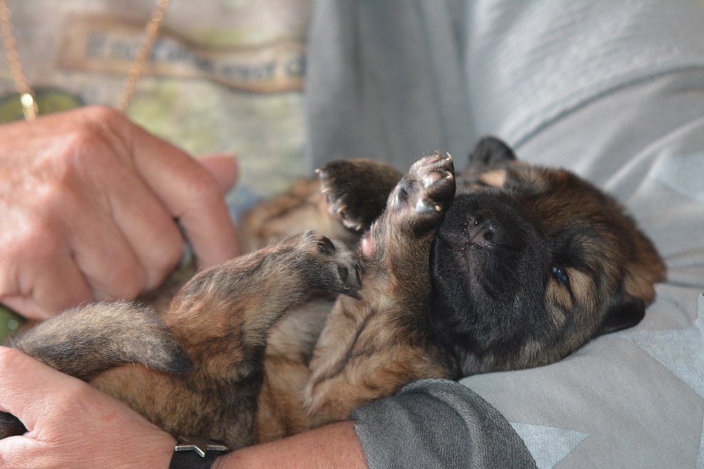 ![]() Schon mit der 3 ten Woche bekommen die Welpen bei uns ausgesuchtes Spielzeug mit dem der erste geruchliche Kontakt hergestellt wird, spätestens ab Mitte der 3ten Woche fangen sie an damit zu spielen und auch schon typische Hundeverhaltensweisen zu üben. Mit der 4ten Woche verteidigen sie bereits nachhaltig Ressourcen und zeigen ein eindeutiges Interesse mit dem Menschen zu interagieren. Welpen die in dieser Zeit und ich meine tatsächlich ganz besonders die dritte Woche.... nicht, oder nur wenig menschliche Zuwendung erfahren, haben ein emotionales Defizit und werden niemals so empathisch und dem Menschen zugewandt sein als Welpen bei denen der Mensch selbstverständlicher Bestandteil seines Lebens geworden ist. |