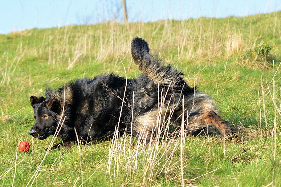 ![]() Aslan heute, er ist so ein souveräner und sicherer Hund, wie man es selten erleben kann. Egal welche Situation, er bewertet sie und verhält sich immer angepasst. Abend im Dunkeln stellt er sich schützend vor Anne, wenn sich im Park plötzlich 2 oder 3 Personen nähern. Tagsüber im Park spielt er ausgelassen auch mit anderen Rüden. Aslan ist ein Ausnahmehund. Ich würde das nicht so sagen, wenn es nicht den Tatsachen entspräche.. Er lebt bei Franz und Anne, beide sind ein älteres Semester. Ich weiß nicht ob ich das Alter der beiden hier verraten darf? Jedenfalls verhält er sich dort total an sein Zuhause angepaßt. Ruhig und sicher, nicht an der Leine reißend. Verspielt, freundlich und doch beschützend. Hier.... zeigt er sich temperamentvoll, führend in der Rudelrollenhaltung. Sicher und vor allem unermüdlich. Er kommt ab und an und verbringt ein paar Tage bei uns. Sofort läuft er ohne irgendwelche Ansagen oder Probleme mit. Er kann ausdauernd neben dem Fahrrad herlaufen. Ignoriert wie unsere anderen Hunde alles von außen. Bellende kleine Hunde andere Menschen, egal was... Freundlich und unbestechlich zeigt er sich. Dieser Hund beeindruckt durch seine Auftreten und seine außerordentliche Optik. Niemals habe ich einen solch souveränen Hund kennenlernen dürfen. Alle haben in der Regel ihre kleinen oder auch größeren Schwächen oder aber einige Wesenszüge die man nicht unbedingt braucht. Eigentlich findet man nicht alles in einem einzigen Hund. Außer in Aslan.... Bei ihm ist einfach alles stimmig und er übernimmt alle Situationen nach kurzer eigener Bewertung. Er ist ein Hund wie man es sich nur wünschen kann. Und das sage ich so. ich kenne ansonsten keinen einzigen Hund an dem ich nicht das eine oder andere nicht so optimal finde. Außer..... an Aslan! Ich hoffe er wird uralt und bereitet noch lange alle jenen die ihn kennengelernt haben viel Freude |