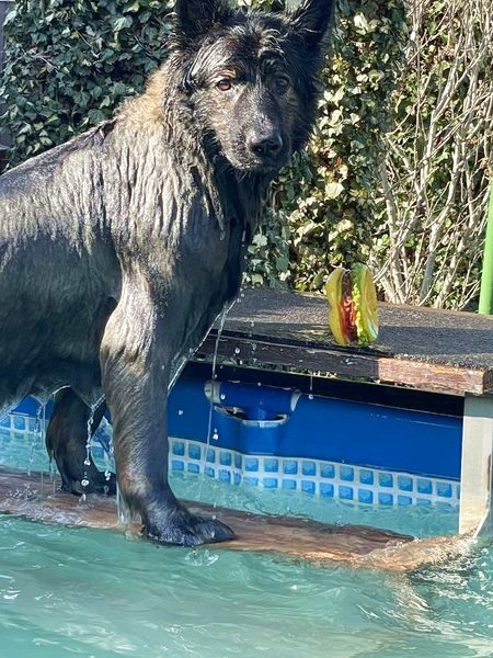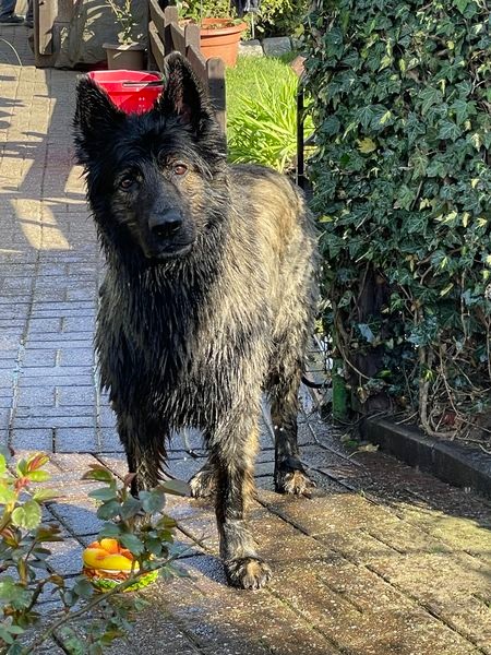 ![]() Aslan mit seinem neuen Kurzhaarschnitt noch nass vom schwimmen :-) Er fühlt sich rundherum wohl! |