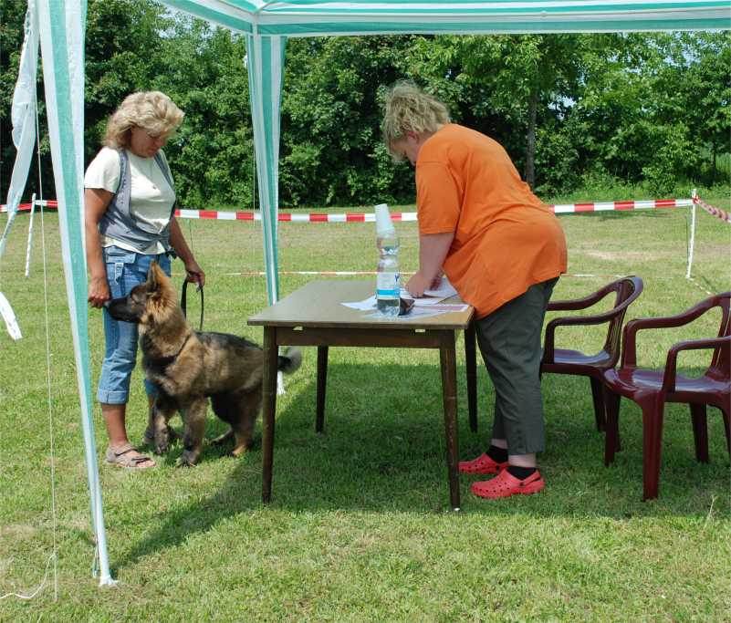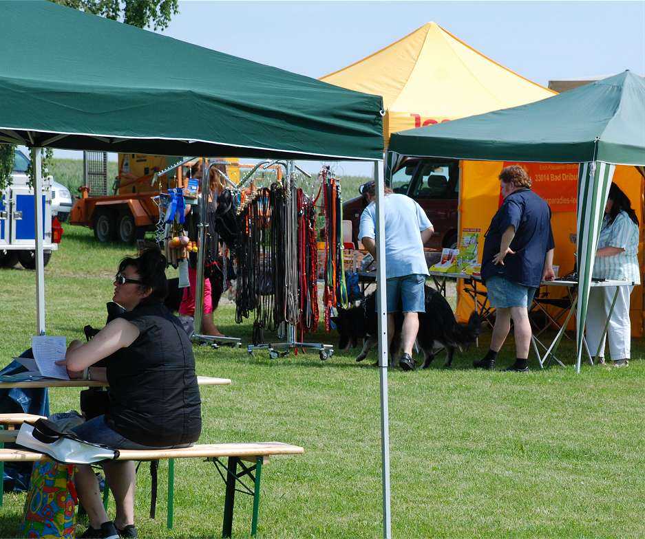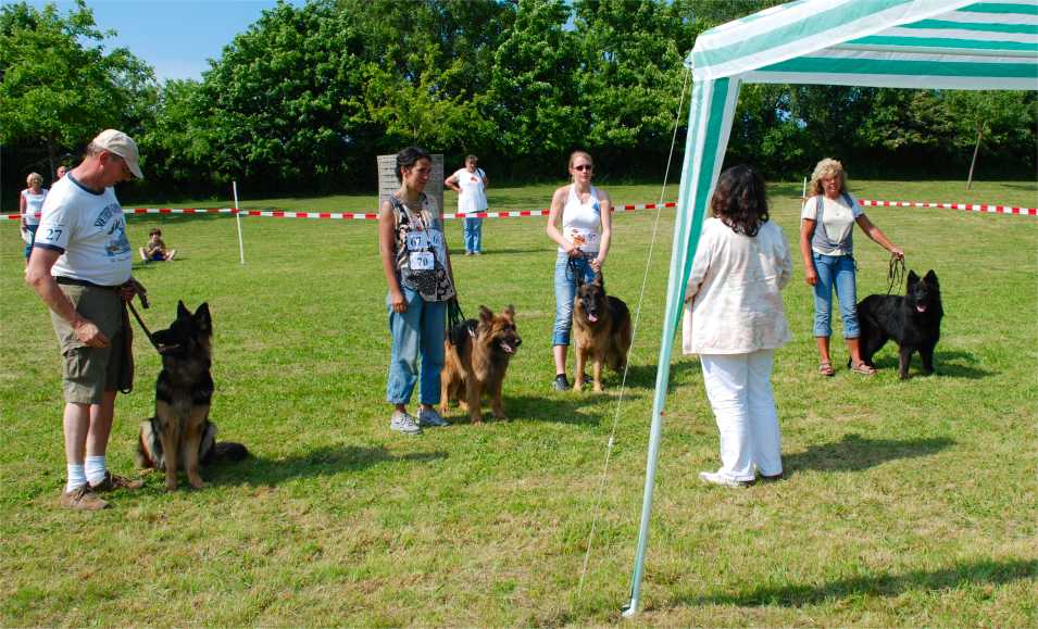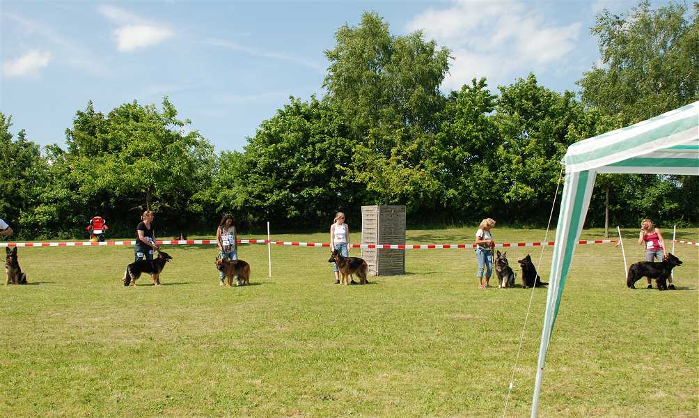 Im Juni 2010 waren wir dann auf einer Ausstellung vom ADRV in Borgentreich. Bei 35 Grad ...... Aber.... wir bekamen einen super Schattenplatz für unser Auto zugewiesen . Ein Ami, der ja nun nicht so wirklich als klein zu bezeichnen ist. Direkt hinter dem Auto waren Anbindemöglichkeiten für die Hunde vorgesehen, so das wir dort in aller Ruhe im Schatten sitzen konnten, alle Türen am Auto auf, die Hunde konnten drinnen liegen oder auch draußen im Schatten. Wir konnten in aller Ruhe unseren Kaffee trinken und uns alles ansehen , ohne das jeder mit seinem Hund direkt bei uns vorbeilaufen musste. Wirklich genial und super angenehm!