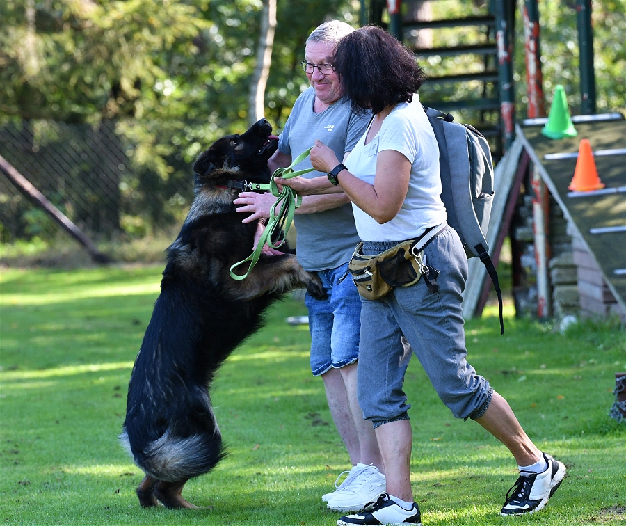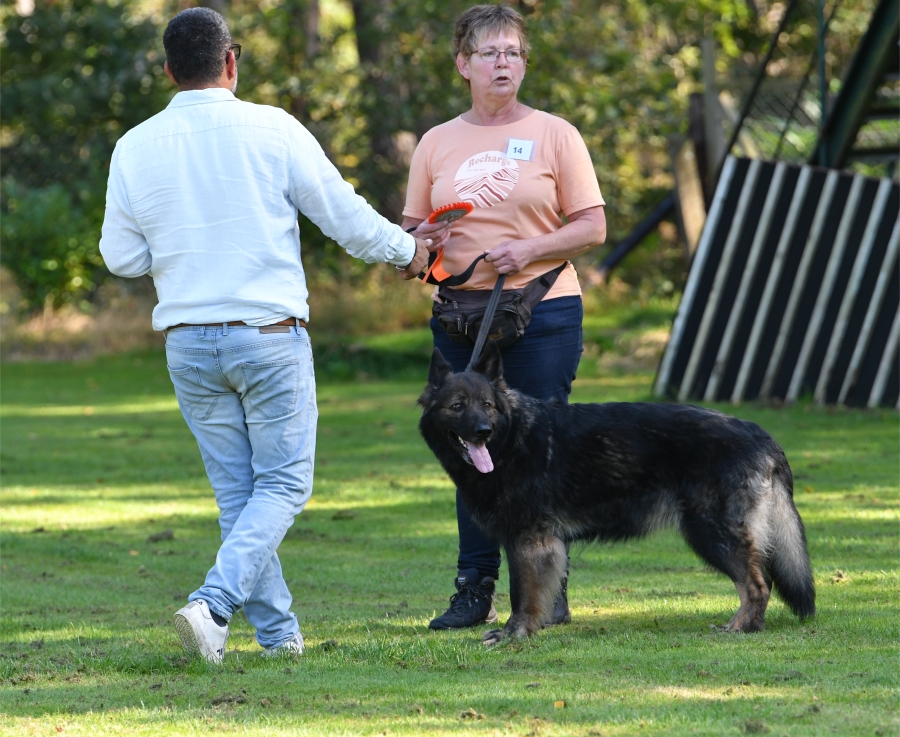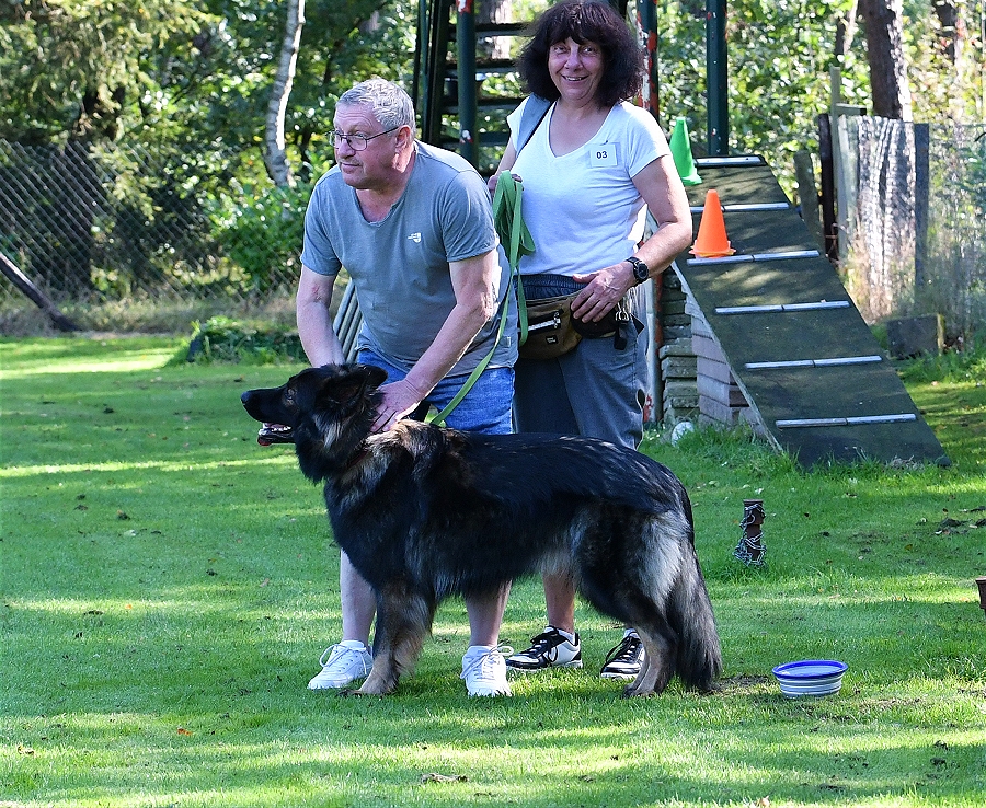 ![]() Diego und Mephisto Bei den Rüden gab es einiges zu sehen, in der offenen Klasse starteten, ich weiß es leider nicht mehr ganz genau, aber ich glaube so 15 - 17 Hunde waren das wohl. Sie wurden in Gruppen aufgeteilt und es gab ein ernsthaft spannendes Feld. Leider wurde Mephisto als fast 8jähriger Hund als erster rausgenommen. Leider und dummerweise habe ich nur Videos von allen Rüden die dann gegeneinander liefen. Bilder habe ich von ihnen nicht wirklich, das ärgert mich schon sehr. Nur einige wenige von denen die dann die ersten 3 wurden. |