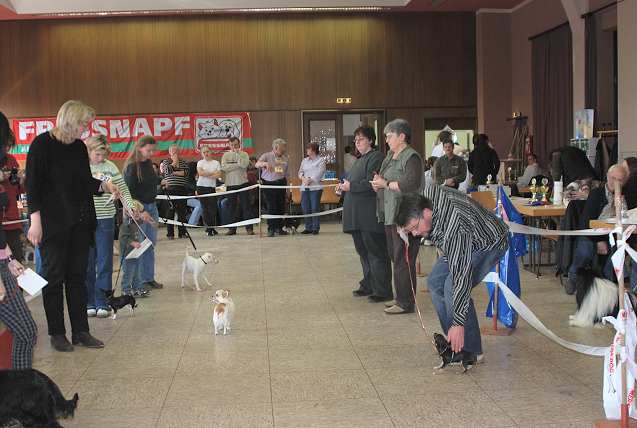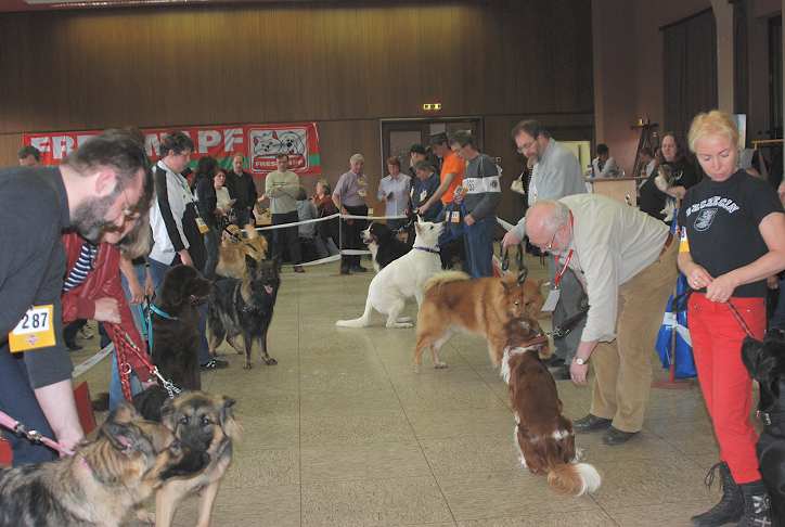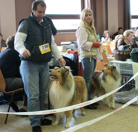 Nachdem alle Hunde gerichtet und bewertet waren, die einzelnen Rassesieger feststanden, ging es dann um die Wurst, Shandar war dabei :-) Also kamen alle 1sten Plätze von allen Rassen in einen Sonderring und dann ging es wer ist der beste Hund der Ausstellung...