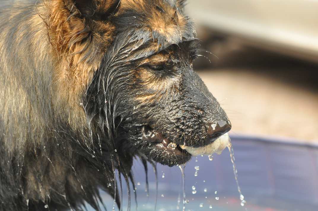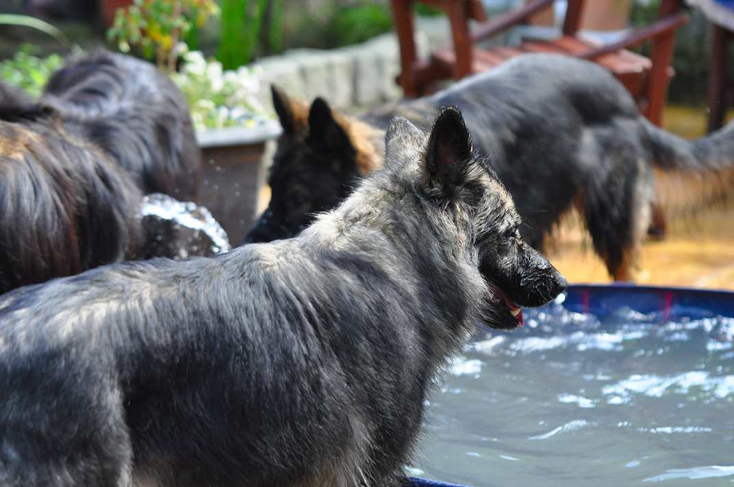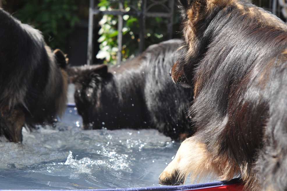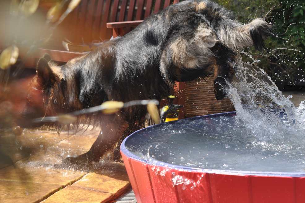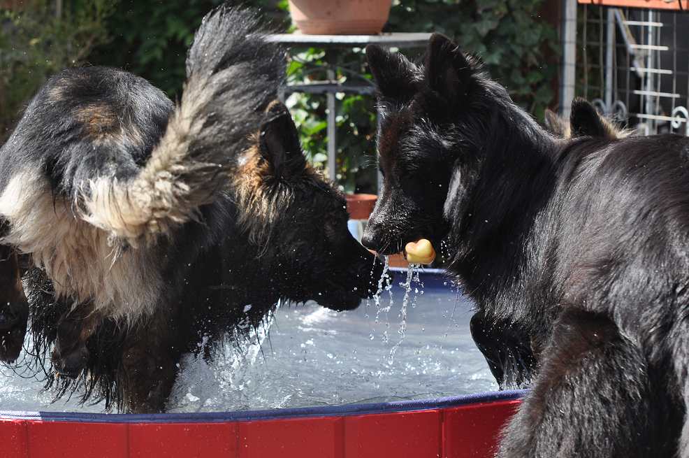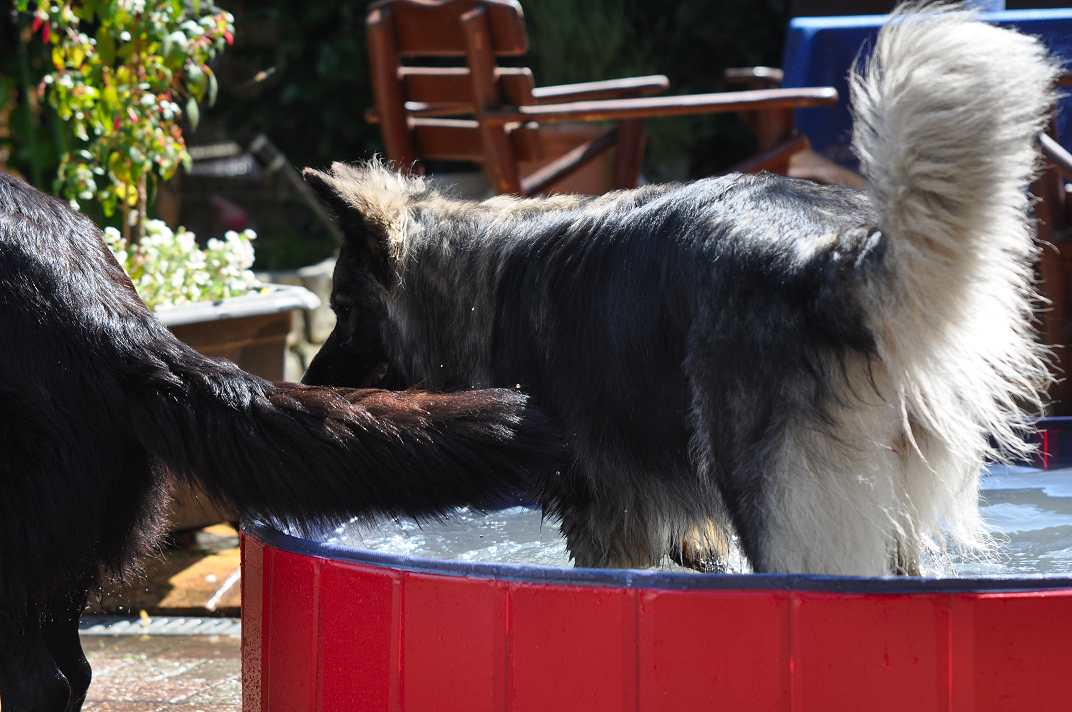 Bei den Temperaturen und zudem auch noch Wochenende, da braucht man hier in NRW nicht ans Wasser zu gehen, weil... ist eh überbevölkert. Die kleinen und großen Kinder, samt ihrer Hunde tummeln sich an jeder auch nur halbwegs geeigneten Wasserstelle, also...was liegt nahe... Holen wir uns das Wasser nach Hause, in Form von Doggi-Pool und Co KG :-)