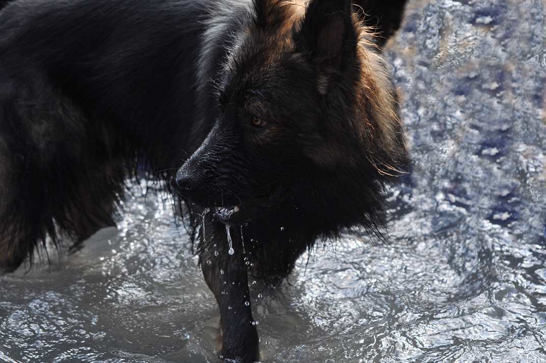 Grizzly hat alles unter Wasser gesetzt, er hatte einen Heidenspaß... rein und raus.... richtig Gas und einmal Kopfüber durchschlittern, dabei blieb nix mehr trocken, selbst die Kamera nicht :-)