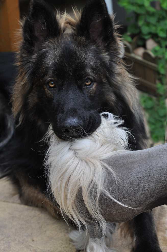 Unterstützt wird sie von Alaska, die ihr in gar nichts nachsteht, von wegen Kuschelhund und kleiner Sofasitzer, neeee, nicht was ein waschechter Chinese ist. Alaska ist mindestens, wenn nicht noch mehr genauso verrückt und suizidgefährdet wie Laetina Auch für sie heißt es immer mittendrin, immer am besten obendrauf. Wenn man mich fragt, kann ich nur sagen Alaska ist Laetina hoch 2. Absolut irre, wenn die beiden auch noch Schäferhunde wären, brauchte ich Unterstützung von *Martin Rütter* :-)