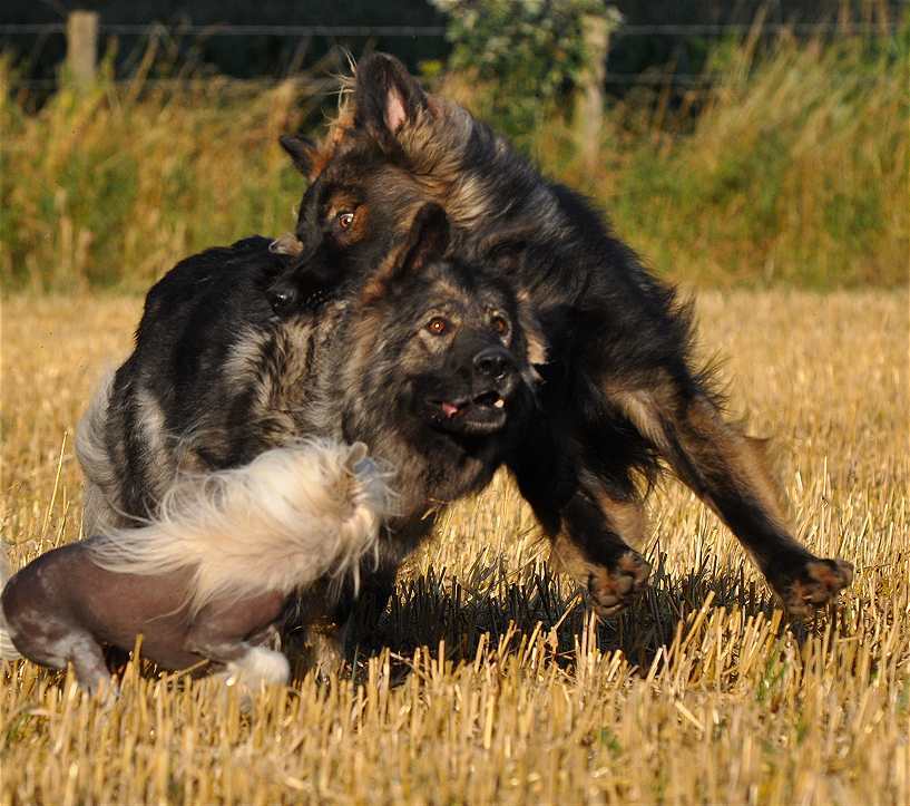 Kana und Alaska, die kleine ist genauso schnell wie die Schäferhunde und schenkt denen mal gar nichts :-)