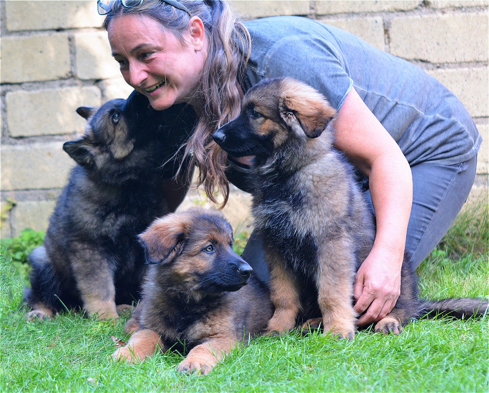Jedenfalls kommen jetzt erst mal Bilder der besonderen Art. Uwe und Anja haben uns besucht... mit allen ihren Welpen und Hunden..... Das war unglaublich! Besuch kam auch noch, schließlich möchte man sich so ein "Event" nicht entgehen lassen :-) Das war schon schön, aber noch schöner war, das die erwachsenen Hunde die sich ja so gar nicht kennen, sich problemlos verstanden haben, und eine Trennung nicht vonnöten war.