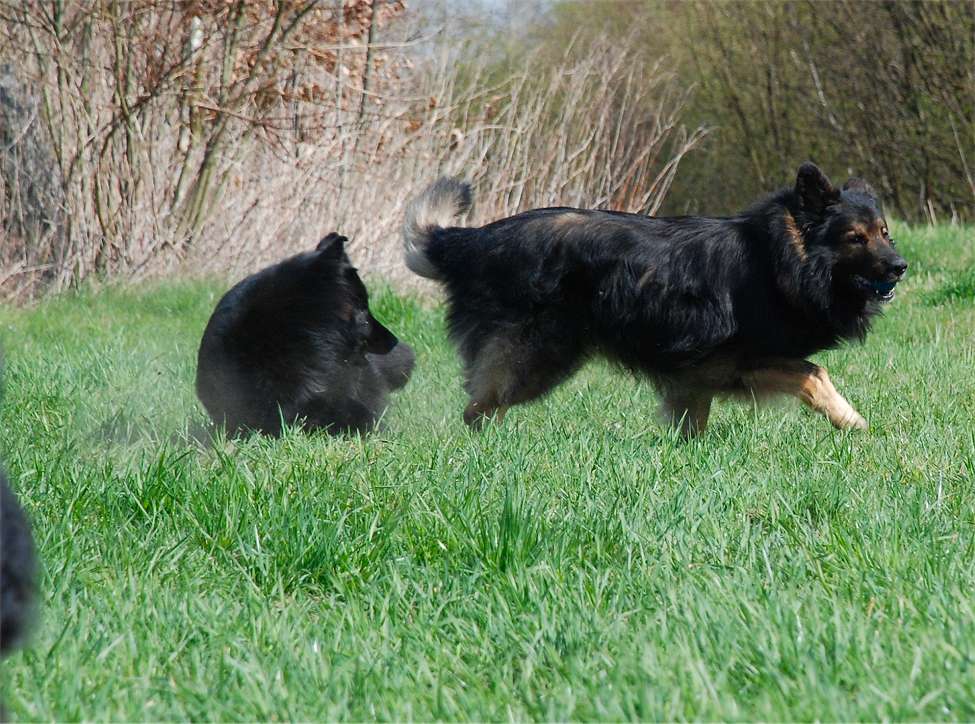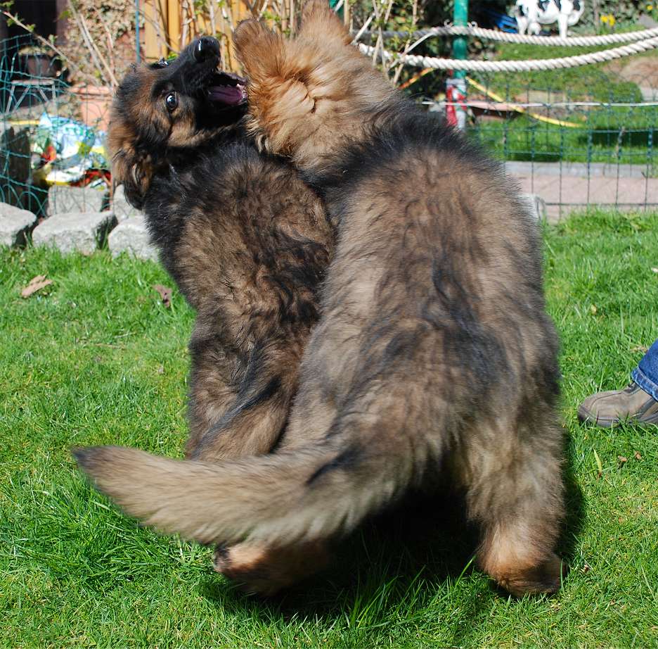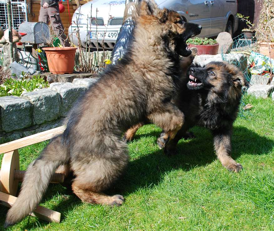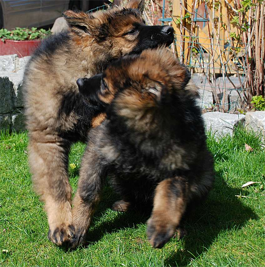 April 2010 Petra ( Link zu Petra) kam mit ihrer Xanni zu Besuch und bei dieser Gelegenheit haben wir natürlich eine private "Welpen- spielstunde gehabt... Die beiden haben sich nichts geschenkt, den ganzen Tag ging es hin und her, einschließlich Fangen spielen um den Lieblingskirschlorber...