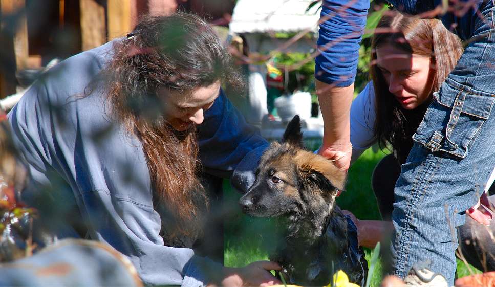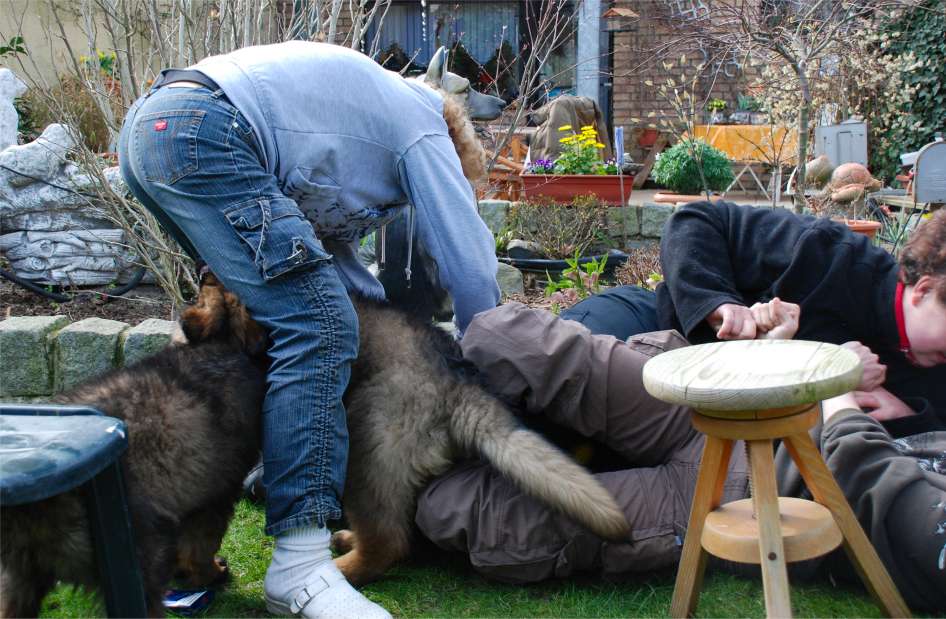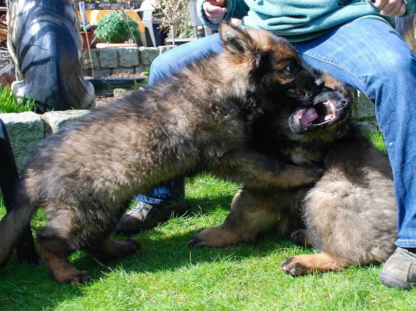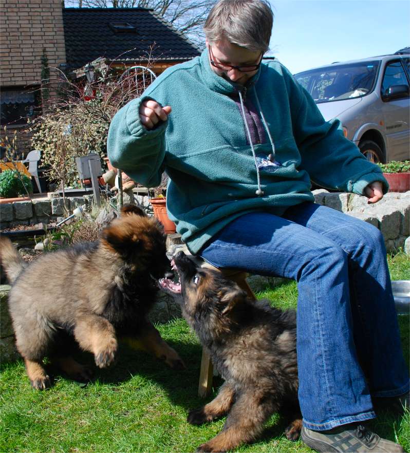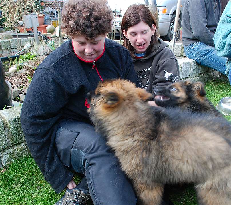In der Zwischenzeit haben sich Sandra und Sophia eingefunden und sind genauso albern wie die Welpen Man muss sich rumkäbbeln und die kleinen zwischendrin..