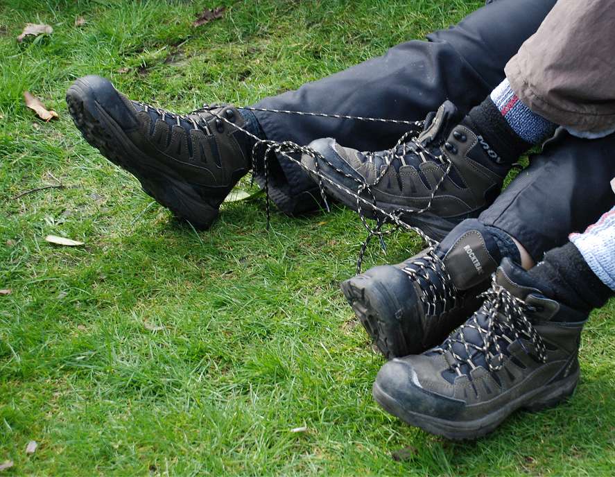 Die Gelegenheit war günstig und ich habe die Schuhe der beiden zusammengebunden und.. war auf dem Weg Wotan zu holen, damit er die beiden mal so ein bisschen ..aufmischt...