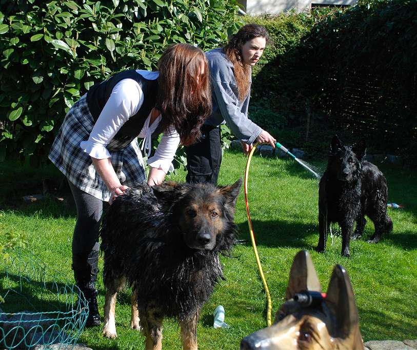 Wotan und Jess, der eine schon eingeschäumt die andere in der "Wassermarschanlage" :-)) |
