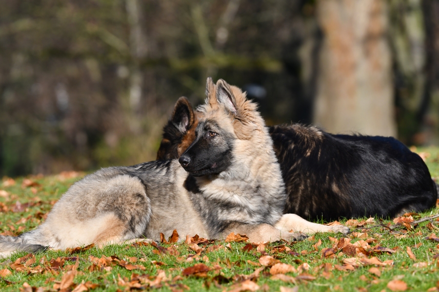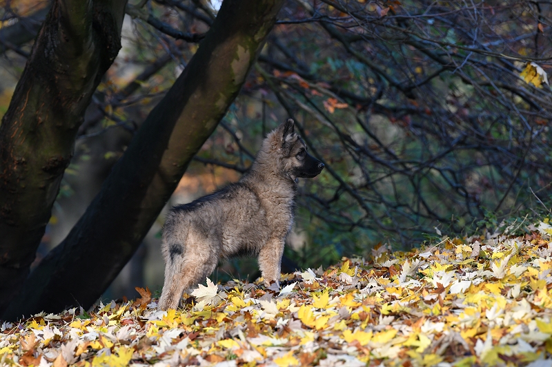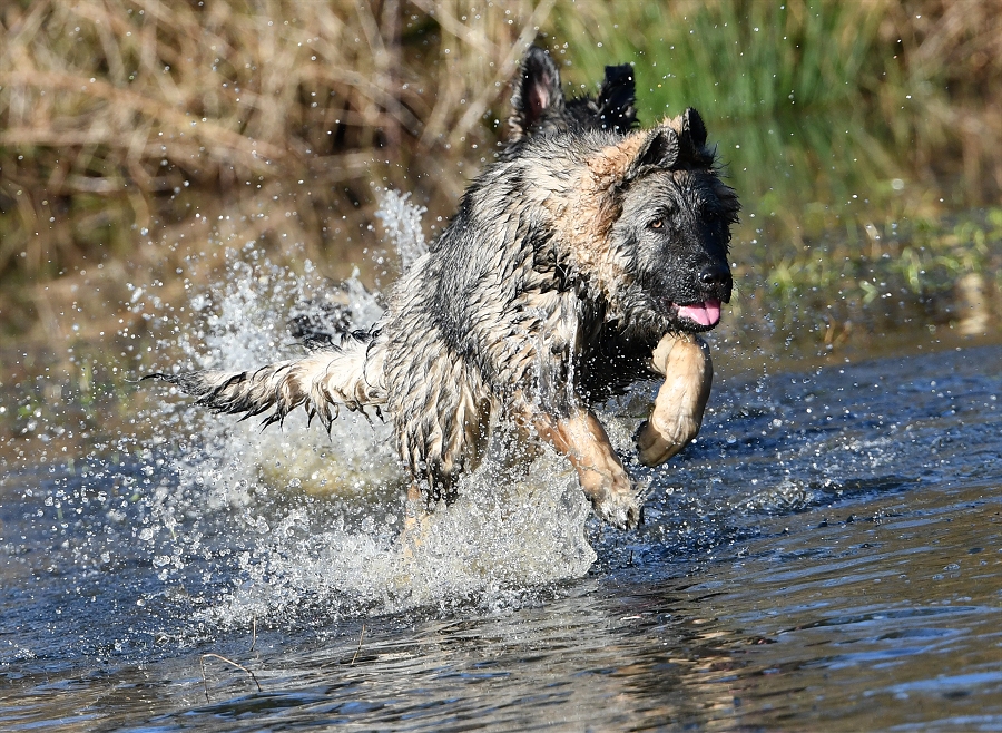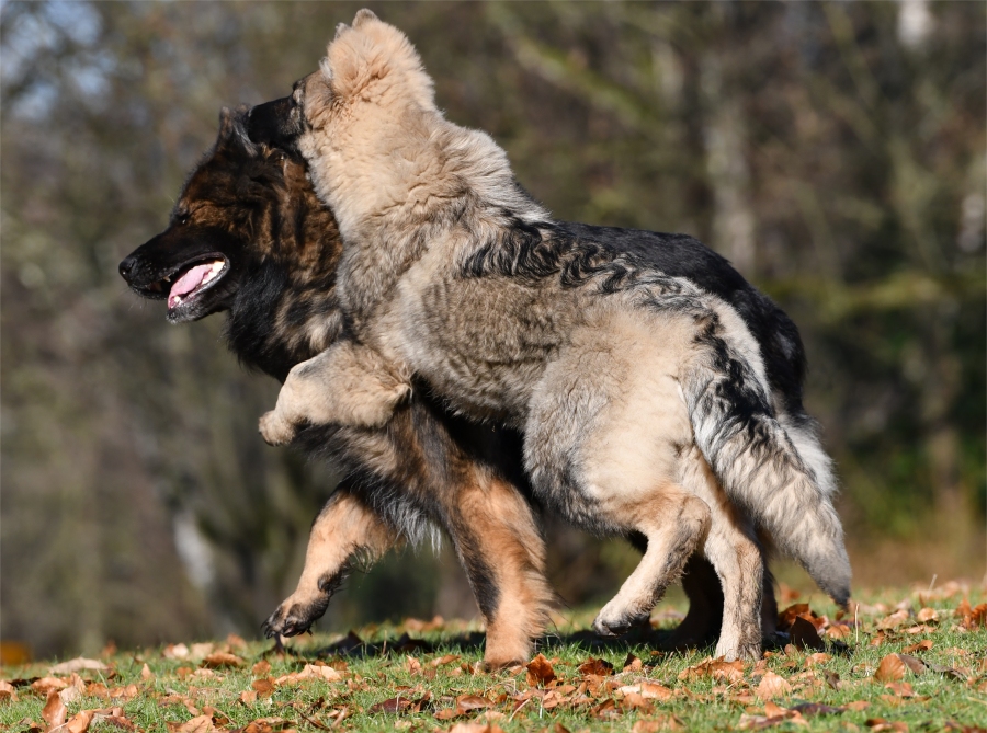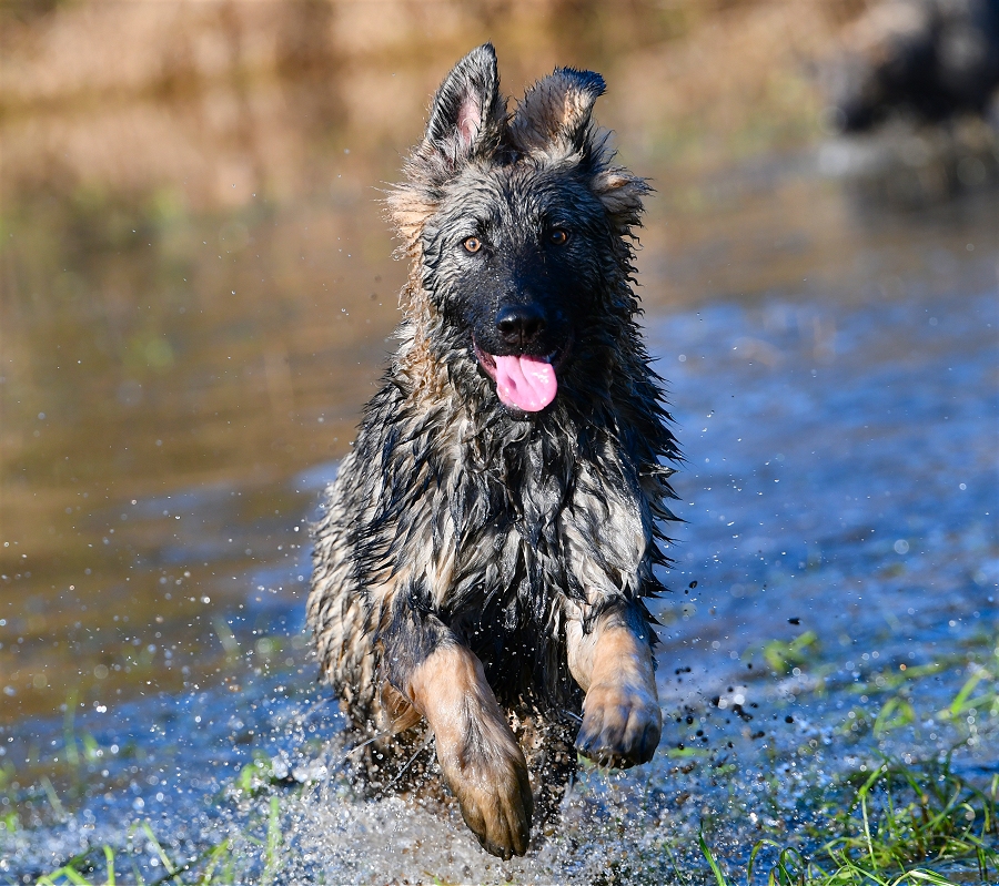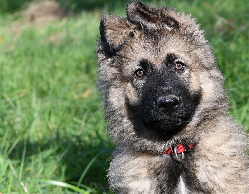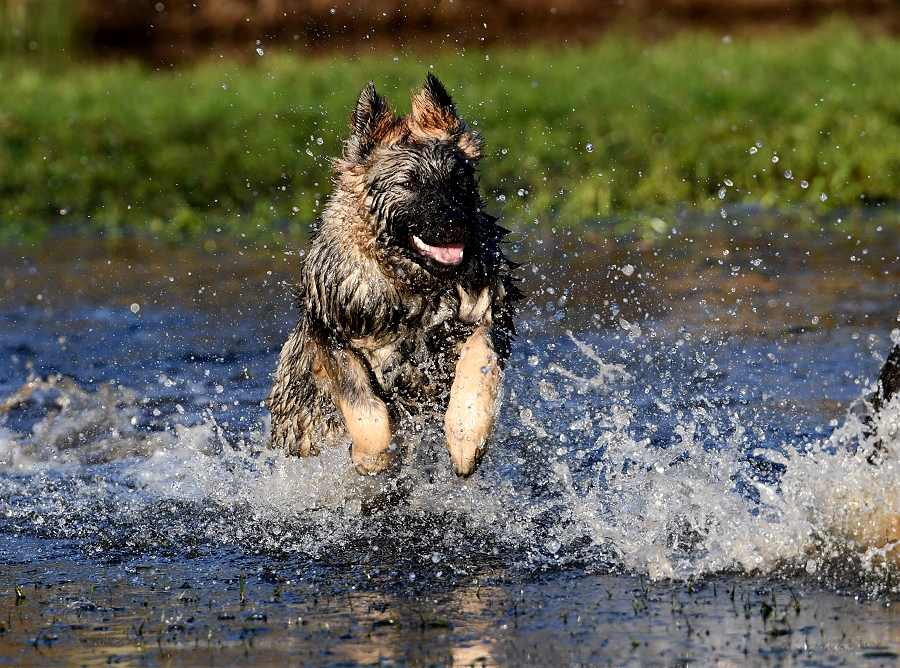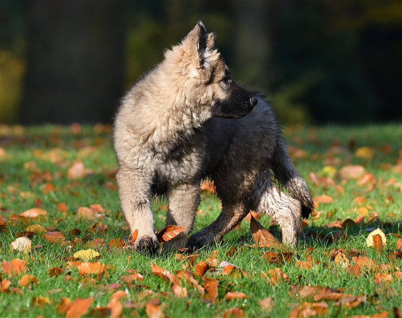 ![]() November... meine Herren, wie schnell die Zeit vergeht ist schon echt unheimlich. Blue ist nun auch schon 14 Monate alt und das Babyfell ist verschwunden. Das kindliche Aussehen hat sich mit dem Flauschfell auch verabschiedet. Sie wirkt erwachsen. Blue ist selbstsicher, überheblich und bekommt ab und an eine Ansage von Ninja. Das nimmt sie auch hin, aber ihr *Arbeitseifer* ist auch nach Ansagen umgebrochen und sie versucht weiterhin Ninja oder LaToya den begehrten Ball abzujagen. Blue ist schnell und wenn ich sage schnell, dann meine ich das auch so. Schneller als alle anderen unserer Hunde, lauffreudig und begeistert von allen neuen Situationen. Sie ist eine sichere und große Hündin, wie alle unsere Hunde sehr gehrorsam. Sie hat einen sehr guten Spiel und Beutetrieb und wird später auch eine wachsame und aufmerksame Hündin sein. Zur Zeit ist sie schlank, hochbeinig und wirkt im Augenblick nicht so wirklich wie ein Schäferhund, sondern eher sehr wölfisch. Ihr Fang ist noch lang und der Kopf mit den engstehenden Ohren eher schmal. Ihr Laufen ist nicht schwingend wie bei den Schäferhunden, am deutlichsten zu sehen im raumgreifenden Trab. Ihr Trab ist knapp über den Boden, schnürend, schnell, der Rücken eine komplett gerade Linie. Sie bewegt sie sich schneller im Trab voran als unsere anderen Hunde. Ihr Blick ist nach vorne gerichtet und vervollständigt das Bild eines Wolfs. Auf den Fotos ist diese Besonderheit natürlich nicht zu erkennen. Auf Videos schon. Nun ich denke sie wird sich auslegen und das jetzt so ausgeprägte wölfische Aussehen wird nach und nach (leider) verschwinden und dem Bild eines Schäferhundes weichen. |