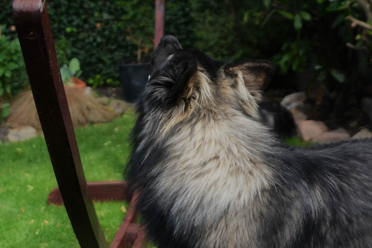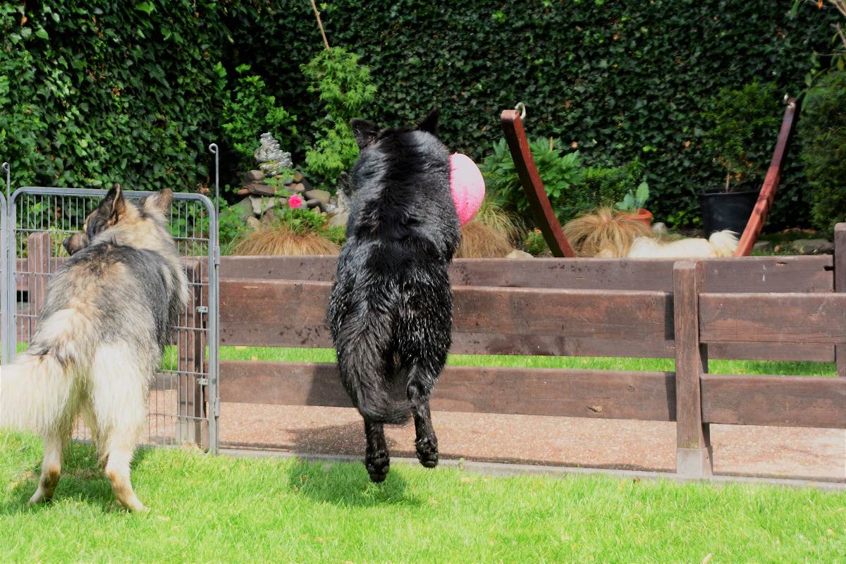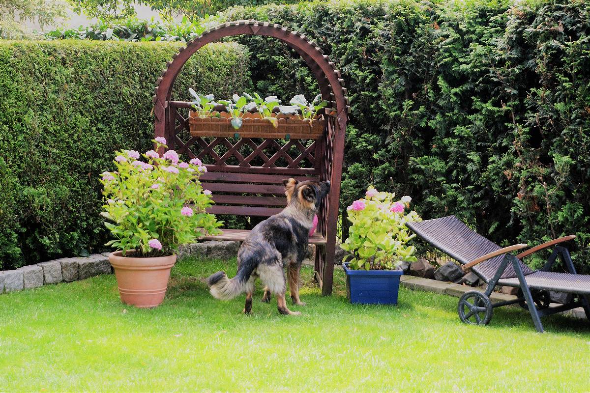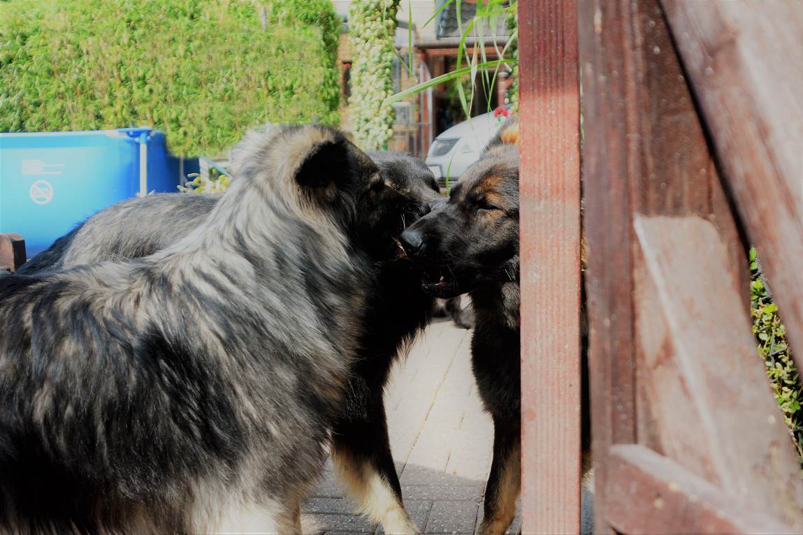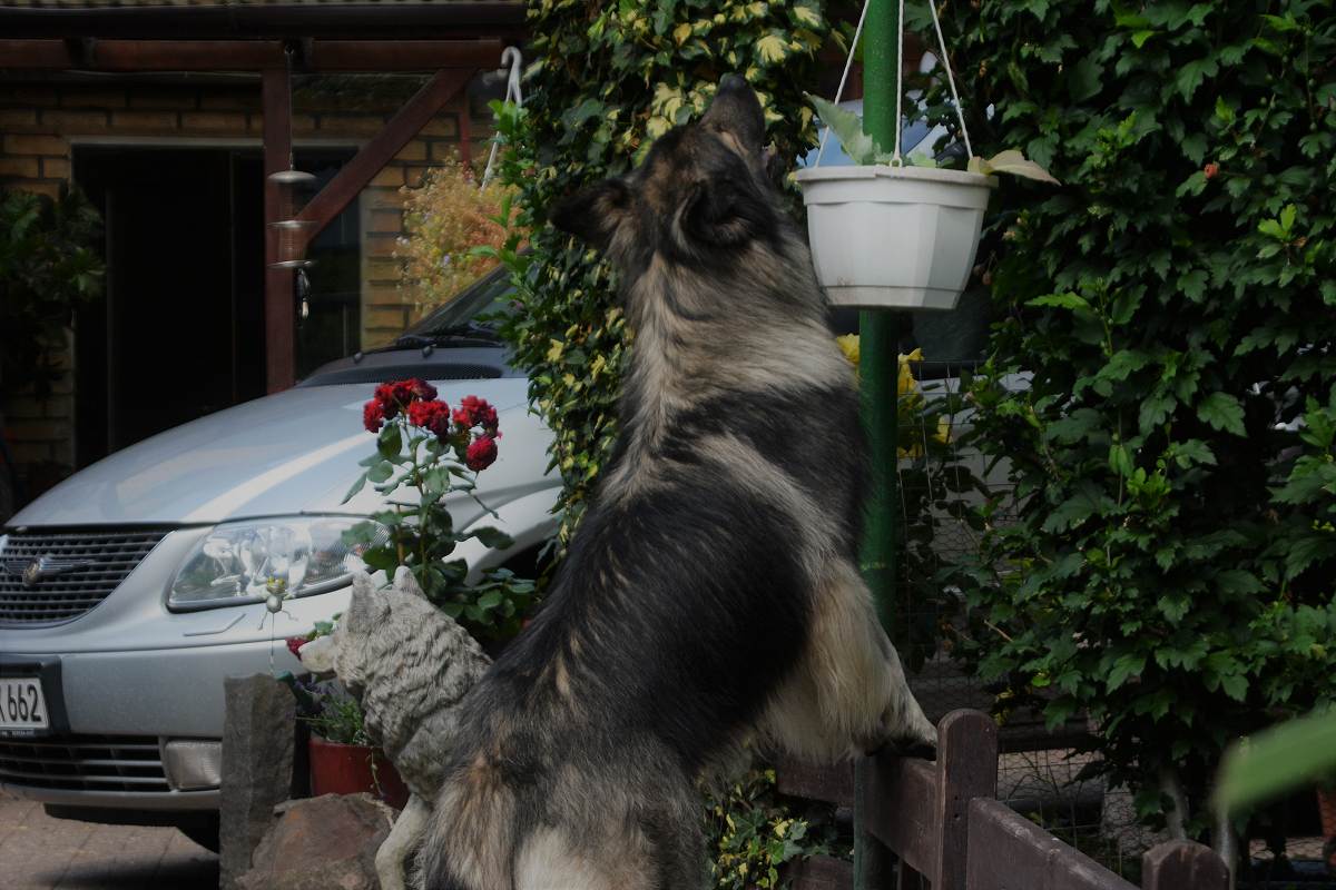 Ab und an machen wir uns einen Spaß daraus, im gesamten Garten alle möglichen Leckerchen zu verstecken. Alle Hunde müssen dafür ins Haus, und wir laufen mit 3 Mann umeinander und jeder glaubt die besten "Verstecke" zu kennen. Da hängen dann Frolic an Wäscheklammern, oder kleine Fleischstückchen an Bäumen. Genauso gibt es Leckerstangen unter Steinen versteckt, oder auf Autoreifen findet man auch was, wenn man nur angestrengt genug sucht. Sprich, egal ob oben oder unter, die Hunde müssen suchen, und haben einen unglaublichen Spaß. Keiner kann es erwarten, das das Spiel endlich losgeht. Es ist schon mehr als interessant zu sehen, das sich die Hunde zum Teil gegenseitig beobachten, sprich einer hat etwas entdeckt und die anderen.... versuchen es ebenfalls zu bekommen. Meist guckt dann der ehrliche Finder in die Röhre, er hat die Mühe und "knibbelt" das ""BobBon"", so nennen wir das Spiel, mühselig aus einer Wäscheklammer, es fällt zu Boden... und der der artig einfach nur wartet, und nichts getan hat, hebt es dann auf und schwupps ... weg... isses :-) Ist wie im richtigen Leben, der eine der sich abmüht und der andere der einfach aufhebt :-) Schaut und genießt den Sommer, er ist viel zu kurz wie ich finde.. und das ist ein Nachmittag im Garten...