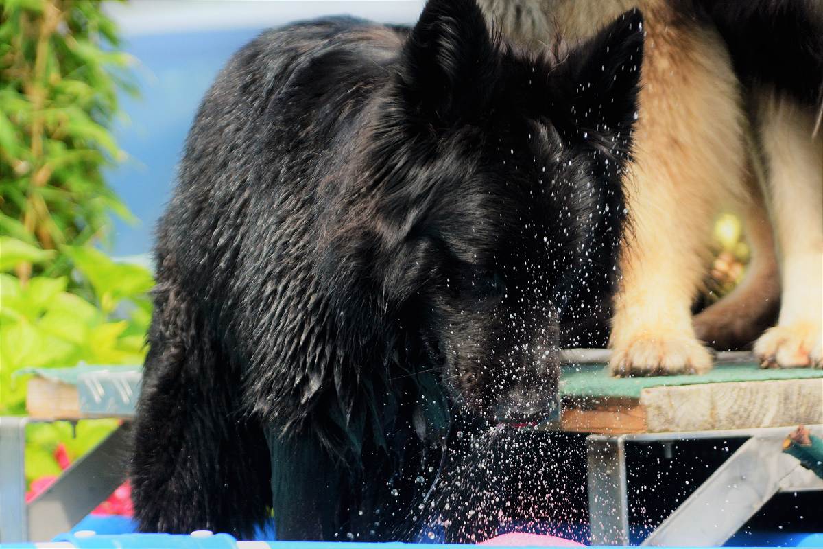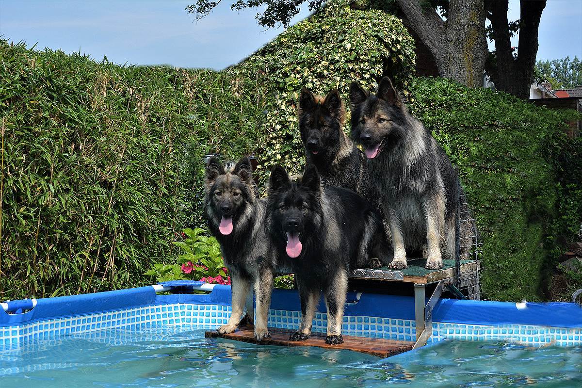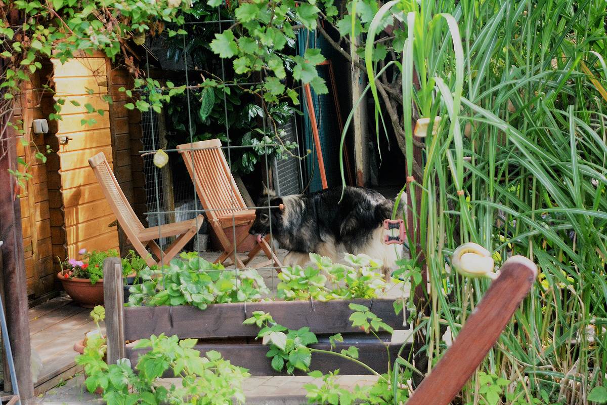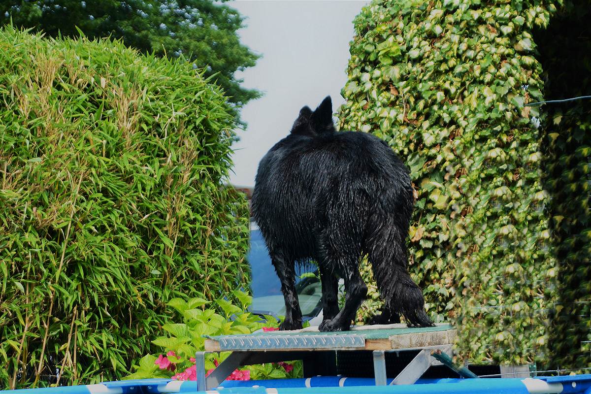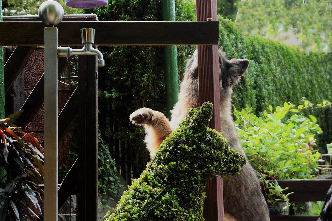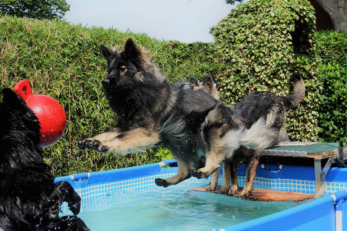 Ab und an machen wir uns einen Spaß daraus, im gesamten Garten alle möglichen Leckerchen zu verstecken. Alle Hunde müssen dafür ins Haus, und wir laufen mit 3 Mann umeinander und jeder glaubt die besten "Verstecke" zu kennen. Da hängen dann Frolic an Wäscheklammern, oder kleine Fleischstückchen an Bäumen. Genauso gibt es Leckerstangen unter Steinen versteckt, oder auf Autoreifen findet man auch was, wenn man nur angestrengt genug sucht. Sprich, egal ob oben oder unter, die Hunde müssen suchen, und haben einen unglaublichen Spaß. Keiner kann es erwarten, das das Spiel endlich losgeht. Es ist schon mehr als interessant zu sehen, das sich die Hunde zum Teil gegenseitig beobachten, sprich einer hat etwas entdeckt und die anderen.... versuchen es ebenfalls zu bekommen. Meist guckt dann der ehrliche Finder in die Röhre, er hat die Mühe und "knibbelt" das ""BobBon"", so nennen wir das Spiel, mühselig aus einer Wäscheklammer, es fällt zu Boden... und der der artig einfach nur wartet, und nichts getan hat, hebt es dann auf und schwupps ... weg... isses :-) Ist wie im richtigen Leben, der eine der sich abmüht und der andere der einfach aufhebt :-) Schaut und genießt den Sommer, er ist viel zu kurz wie ich finde.. und das ist ein Nachmittag im Garten...