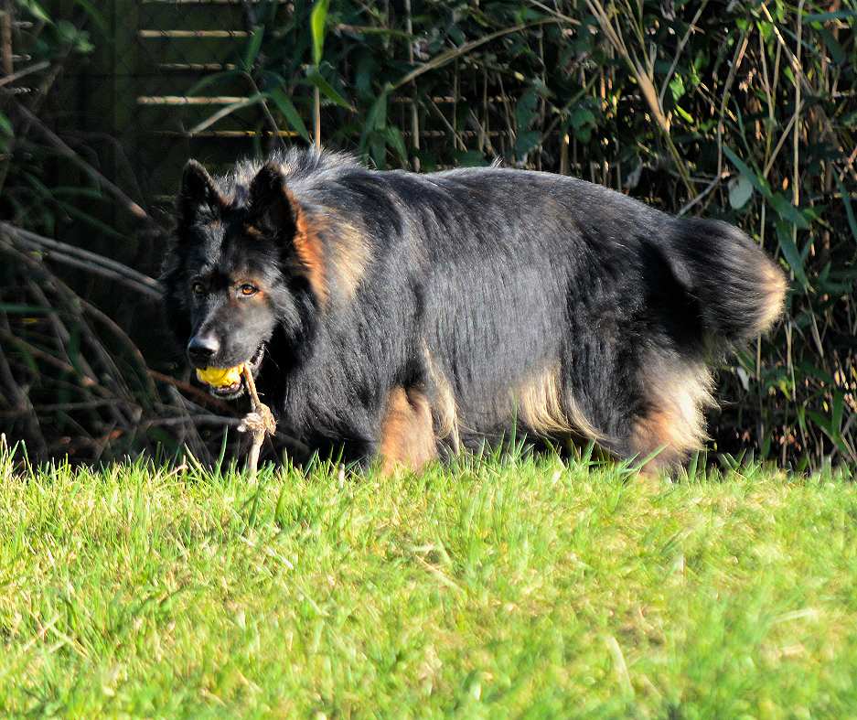 Hier noch einmal mit 7 Monaten Sandra führt sie und bildet sie auch aus. Bisher läuft unser Zusammenleben mit ihr und den anderen Rudelmitgliedern relativ ungestört. Lexa hat sie natürlich ab und an auf dem Kieker, weil C-Jay sich anmaßt sie zu rempeln wenn Lexa nach ihrem Ball rennt. In dem Moment kann Lexa sie nicht maßregeln, dafür hat sie keine Zeit wenn der Ball fliegt, aber... es ist natürlich ein "Übergriff" seitens C-Jay und Lexa maßregelt sie dann an anderer Stelle.