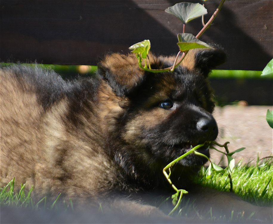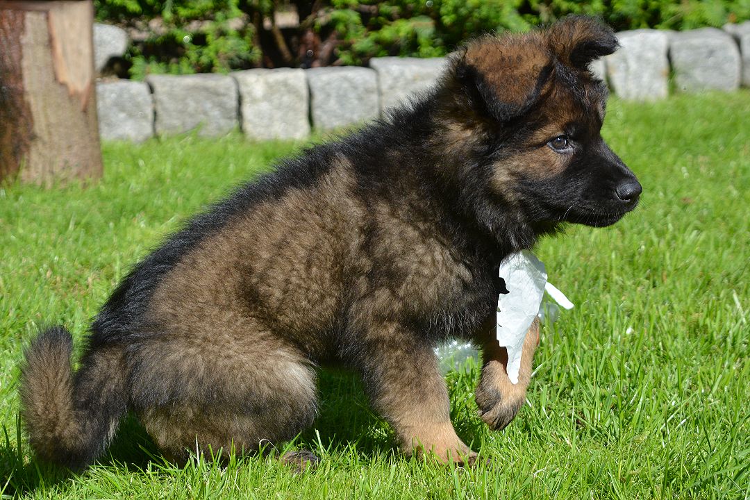 C-Jay 7 Monate Auf alle Fälle finde ich natürlich das sie super gute Linien haben und unserer ADSH Zucht unabdingbar zum Vorteil gereichen. Aber ich bin auch ein kritischer Mensch und wollte mir C-Jay erst einmal eine geraume Zeit ansehen. Schließlich habe ich mit diesen Hunden bisher nicht so wirklich Glück gehabt. Auch hier werden wir noch weitersehen. C-Jay ist jetzt einjährig und bisher ist sie eben ein bisschen Ossitypisch stur und auch ein bisschen territorial sowie ein wenig resourcenbewachend.
