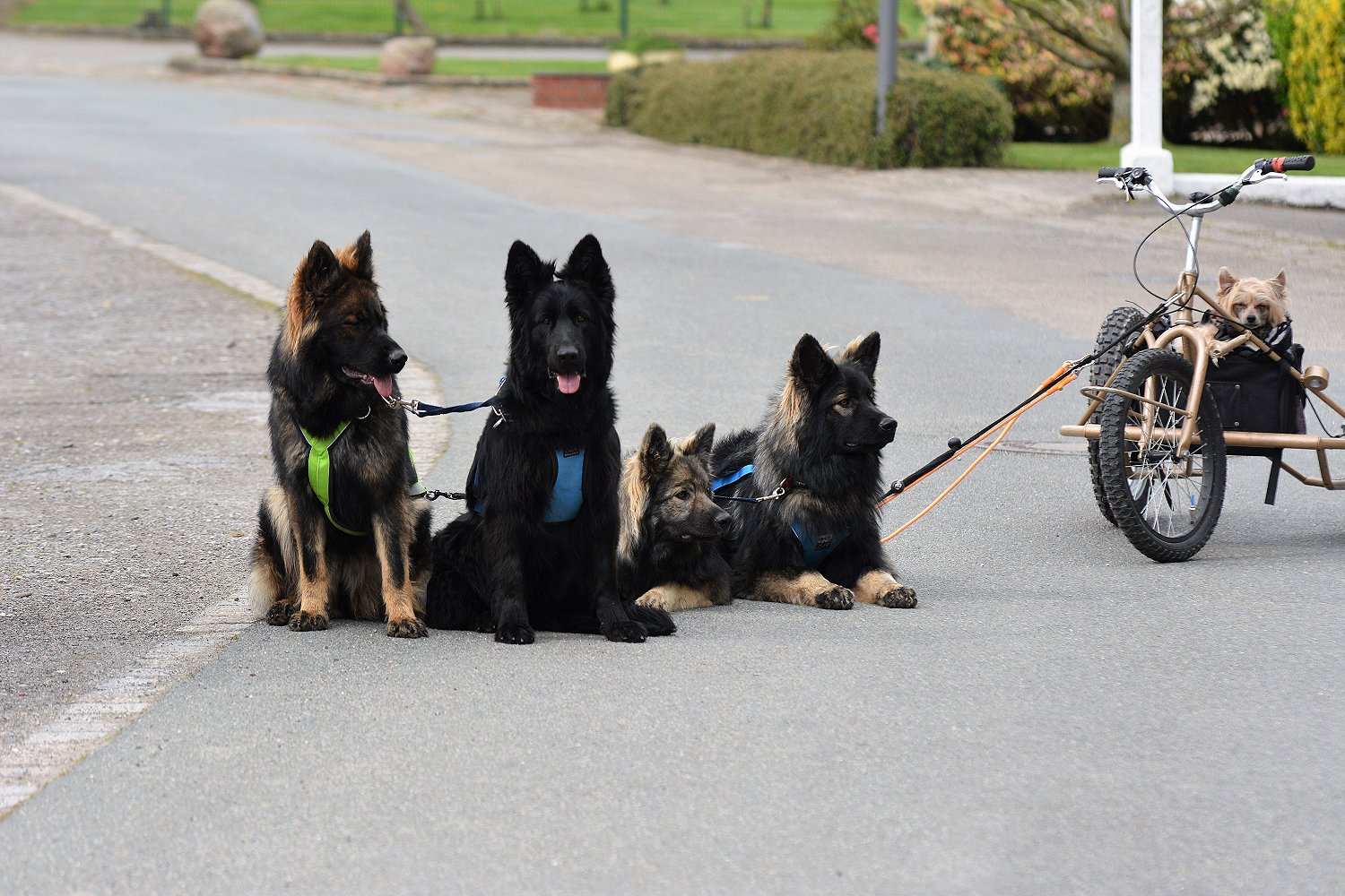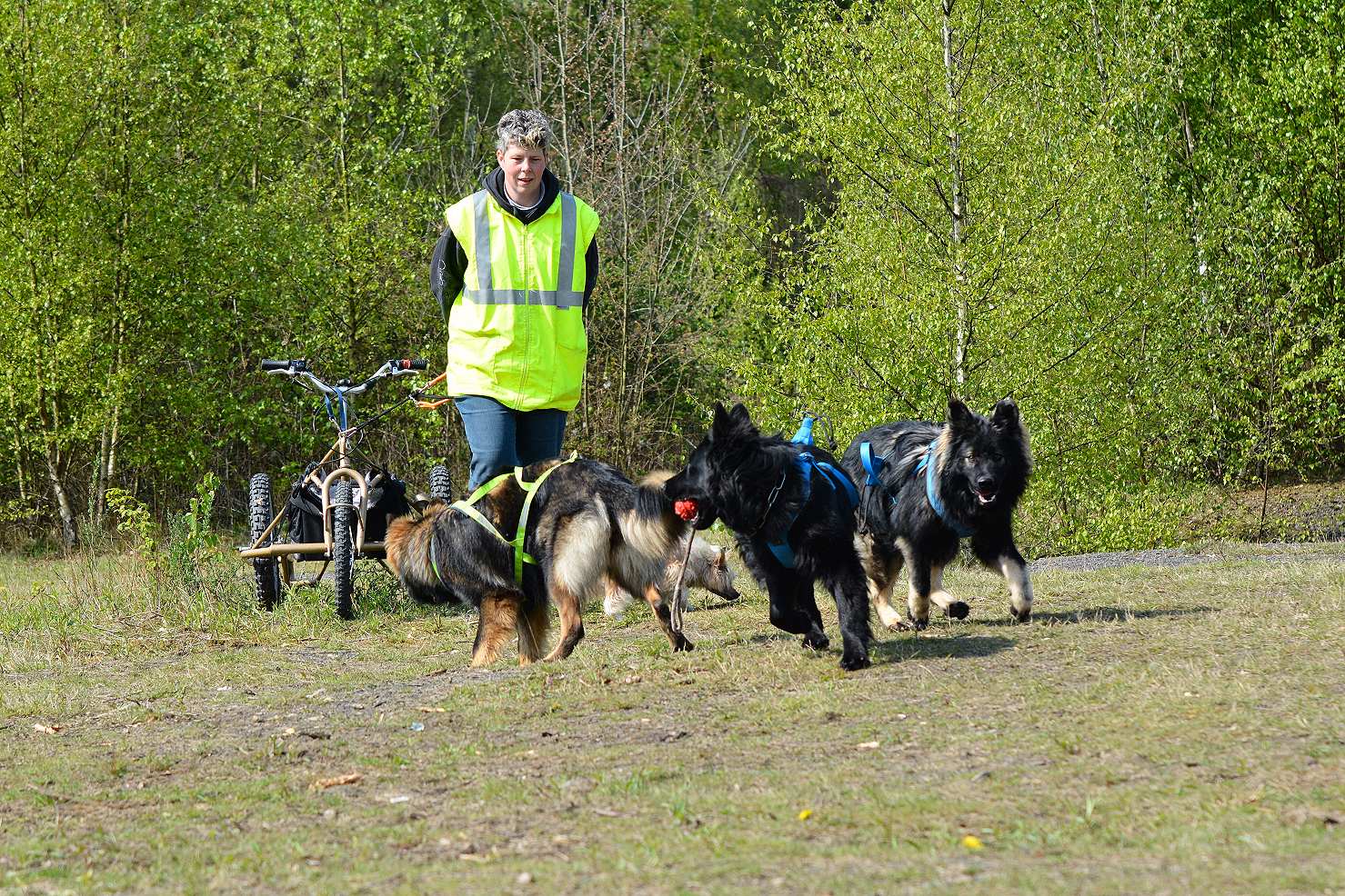 Das Trike ist leicht zu ziehen und wenn wir am Rundweg angekommen sind ...ca 2 Km von Zuhause, dann laufen die Hunde frei und wir ziehen die Trikes.