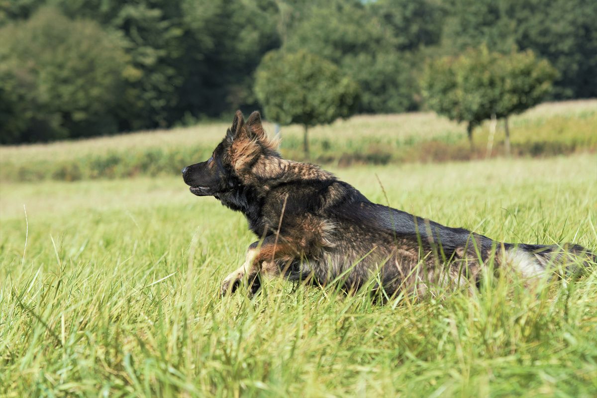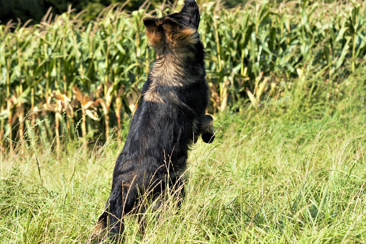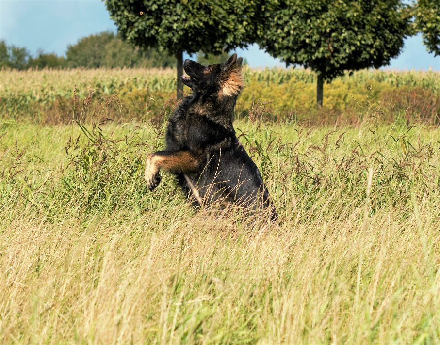 Sie liebt hohes Gras, hopst gerne und ausgiebig darin herum. Am liebsten ist es ihr, man versteckt einen Ball darin und sie darf ihn suchen. Das macht ihr große Freude.
