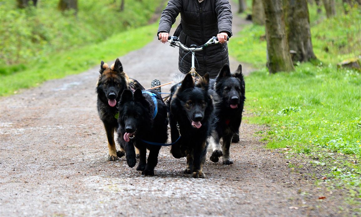 Fahrrad fahren ist für sie ebenfalls ein Highlight. Sie kann unendlich lange und ausdauernd laufen, wenn sie gefordert wird. Man braucht keine Leine oder Halsband, auf Zuruf wechselt sie die Seiten, bleibt stehen oder läuft rechts oder links. Andere Hunde und andere Menschen interessieren sie nicht. "Aber dazu muss ich sagen, das ich sie auch so erzogen habe, (alle meine Hunde) dürfen keine anderen Spaziergänger und auch keine anderen Hunde belästigen."