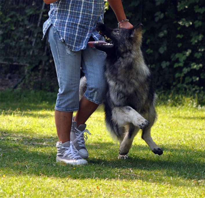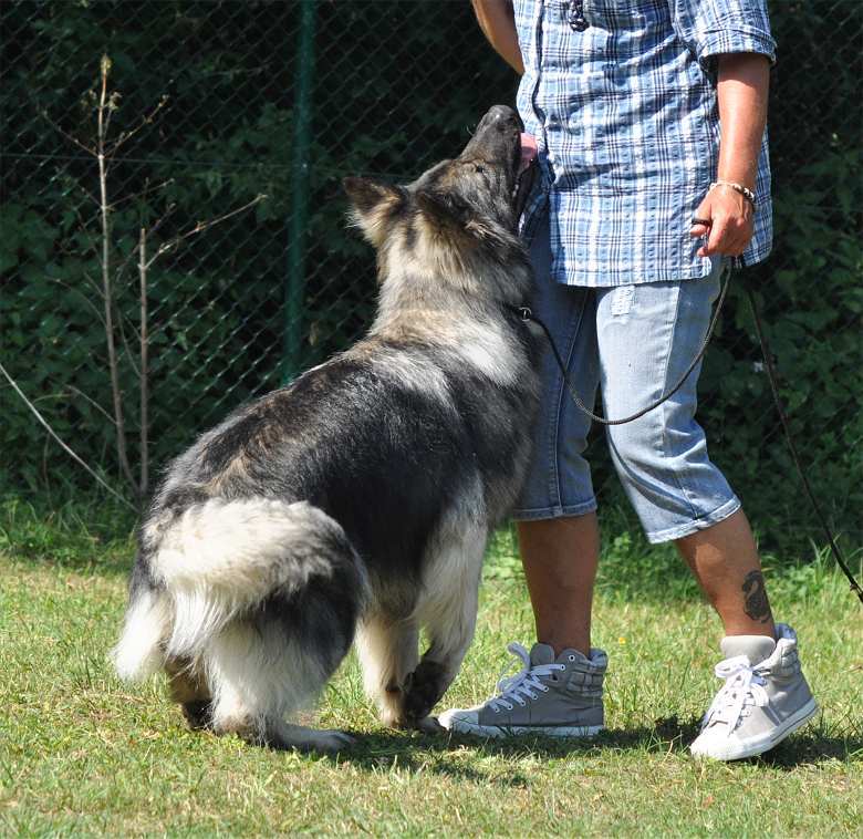 Chakana, meine kleine, freundliche, unnachgiebige, total abgedrehte, verrückteste Hündin auf Welt :-) Chakana ist ein ungewöhnlicher Hund, nicht ihre Farbe macht sie dazu, sondern einzig und allein ihr Wesen. Dieser Hund bedeutet vielen Menschen etwas, sie schleicht sich in alle Herzen, sie ist überschwänglich sie ist einfach unnachahmlich, (fragt mal Nina, Carola, Melanie und wie sie alle heißen) Ich kann das gar nicht beschreiben aber Kana... ist eben so, das sie alle Menschen liebt, das auch deutlich zeigt und aber auch alle Menschen auf sie posiiv reagieren. Trotzdem ist sie, wenn sie jemanden nicht leiden kann, und das ist dann in keinem Fall ein Mensch, sondern ein anderer Hund, noch genauer eine andere Hündin :-) dann geht sie wirklich mit unglaublicher Sturheit und Härte ihren Weg und ist genauso wie in ihrer unerschöpflichen Freundlichkeit, das genaue Gegenteil. Übrigens macht Kana auch einen sehr guten Schutzdienst, aber das ein anderes mal. Kana ist mein Spaßhund, sie vereint vieles und ist auch auf der so genannten Unterordnungebene ein Ausnahmehund. Ihr habe ich nicht die starre Unterordnung nach PO beigebracht, sondern sie macht einen Mix aus Fußarbeit, wirklich im Sinne Fußarbeit, sie kann gleich mit mir, ihre Füße genauso bewegen wie ich meine Füße bewege. Sie macht gleichzeitig das eine oder andere aus dem Dogdancing Bereich einfach ein Mischmasch aus allem, vereint in Chakana..