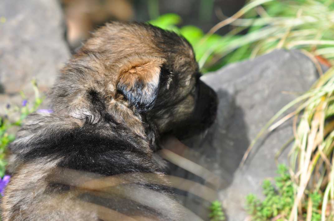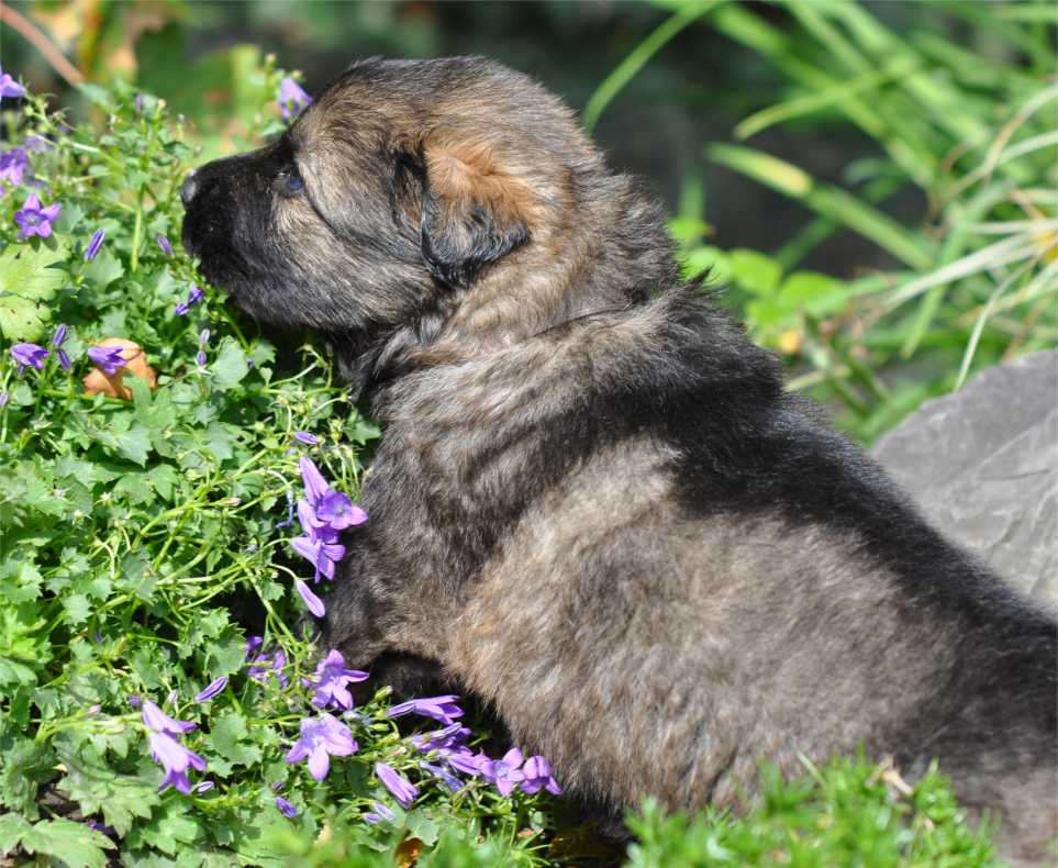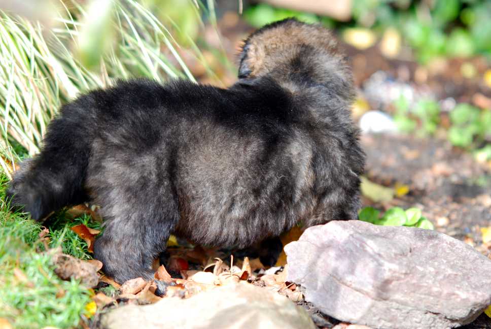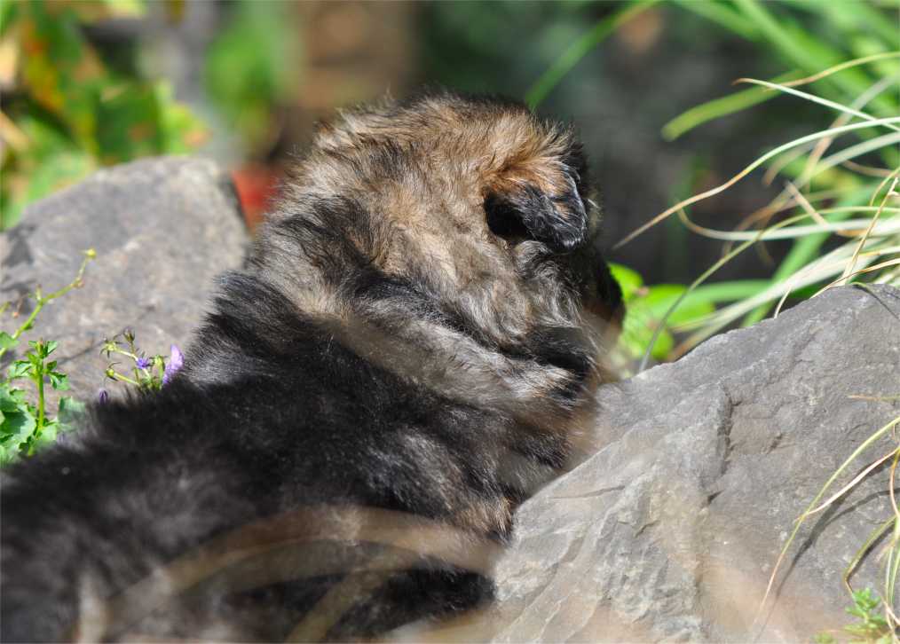 Die Sonne scheint, also...alles wacker nach drau0en. Im Doggycar per Express... Die Kleinen sind für mich persönlich wirklich etwas ganz besonderes- Sie sind ruhiger im Haus, sie sind mit 3 Wochen unglaublich auf den Beinen. Sie zeigen schon jetzt Charaktereigenschaften, sie schauen sich alles genau an. Sie fressen selbstständig und Kana.. Kana ist easy, wie ich es von ihr gewohnt bin, sie liegt auf der Terrasse und schaut nicht einmal hin, was ihre Blagschaft da treibt.. Brauch ich nicht, scheint sie zu sagen, Frauchen ist doch dabei! Die Kleinen, stelle ich immer wieder fest, kommen auf den Fotos nicht so wirklich rüber. Sie sind ungewöhnlich groß, haben super viel Fell und ausnehmend runde Köpfe. Sie sind mit einem Wort....schööön! Auf den Fotos sieht man das gar nicht so richtig ? Sie haben ungewöhnlich blaue Augen und nur 2 sind so, wie ich 3 Wochen alte Welpen kenne. Sie sind etwas kleiner, aber trotzdem super viel Haare und gerade Ninja, der einer von den kleineren ist, ist der fixeste in der Bande neben Grizzly, der immerzu an meinen Füßen klebt. Kazan.... ja neee...das ist klar... der ist völlig ...""Was geht mich das alles an"".... Wo ich ihn hinbringe, da bleibt er.. höchstens sitzend, wenn nichts weiter passiert legt er sich einfach hin und schläft weiter.... Er ist mit einem Wort ......gemütlich...... und durch nichts aus der Ruhe zu bringen. Aber ich finde...genauso sieht er auch aus :-) Kashina.. der ist noch das eine oder andere ..unheimlich... Dann muss Mama auf den Plan... Kana guckt meist nur und ..... bleibt gelassen liegen... Kana ist ja eh "kein Hund" sondern.. mein Blondchen... und auch die Welpenaufzucht macht sie total mühelos... Wenn ich mit den Welpen im Garten bin... ja und... ihr doch egal... sie muss nicht aufpassen auf die Babys, das macht Frauchen. Das ist super angenehm, wie ...die Babys von ihr.... Und nun.... Fotos von heute... draußen!!!!