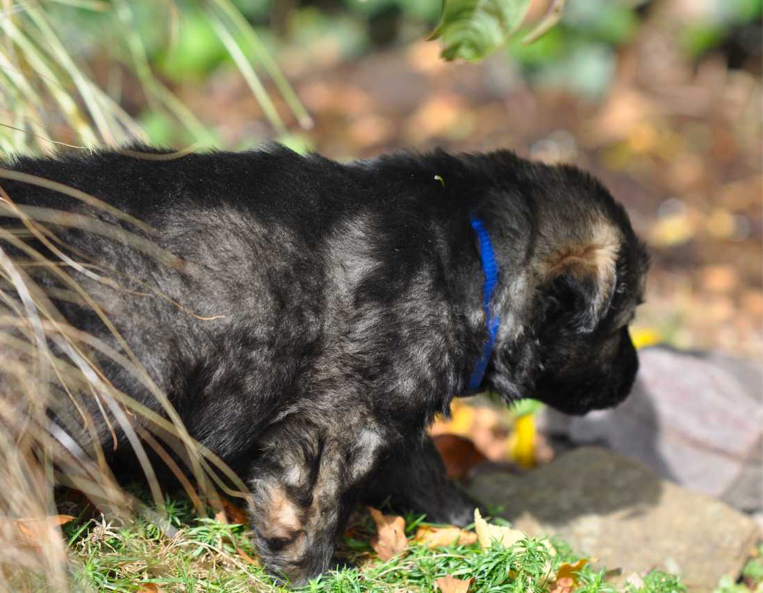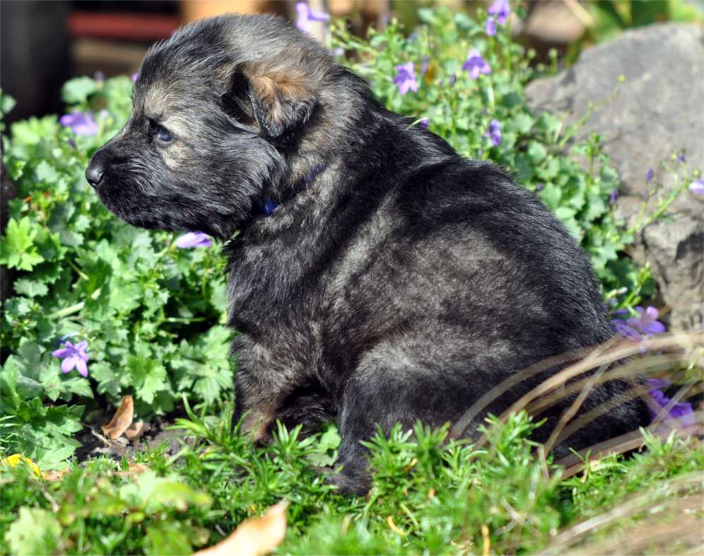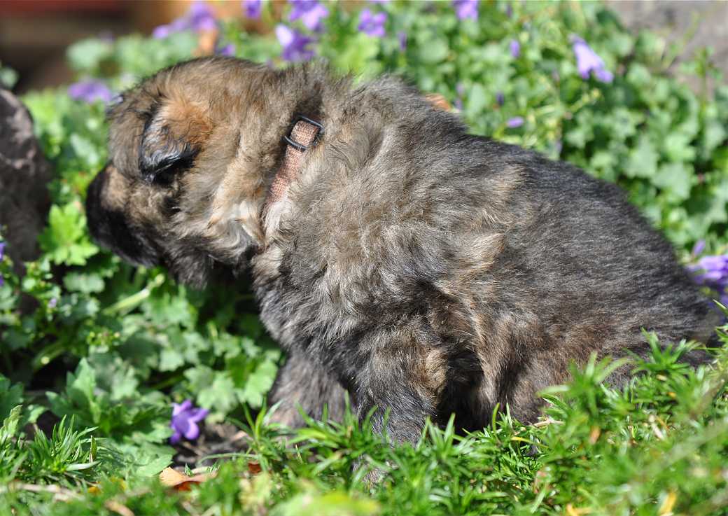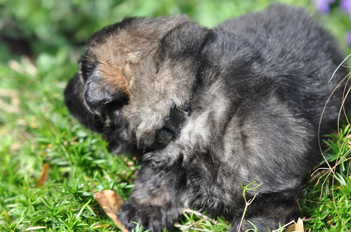 Die Sonne scheint, also...alles wacker nach drau0en. Im Doggycar per Express... Die Kleinen sind für mich persönlich wirklich etwas ganz besonderes- Sie sind ruhiger im Haus, sie sind mit 3 Wochen unglaublich auf den Beinen. Sie zeigen schon jetzt Charaktereigenschaften, sie schauen sich alles genau an. Sie fressen selbstständig und Kana.. Kana ist easy, wie ich es von ihr gewohnt bin, sie liegt auf der Terrasse und schaut nicht einmal hin, was ihre Blagschaft da treibt.. Brauch ich nicht, scheint sie zu sagen, Frauchen ist doch dabei! Die Kleinen, stelle ich immer wieder fest, kommen auf den Fotos nicht so wirklich rüber. Sie sind ungewöhnlich groß, haben super viel Fell und ausnehmend runde Köpfe. Sie sind mit einem Wort....schööön! Auf den Fotos sieht man das gar nicht so richtig ? Sie haben ungewöhnlich blaue Augen und nur 2 sind so, wie ich 3 Wochen alte Welpen kenne. Sie sind etwas kleiner, aber trotzdem super viel Haare und gerade Ninja, der einer von den kleineren ist, ist der fixeste in der Bande neben Grizzly, der immerzu an meinen Füßen klebt. Kazan.... ja neee...das ist klar... der ist völlig ...""Was geht mich das alles an"".... Wo ich ihn hinbringe, da bleibt er.. höchstens sitzend, wenn nichts weiter passiert legt er sich einfach hin und schläft weiter.... Er ist mit einem Wort ......gemütlich...... und durch nichts aus der Ruhe zu bringen. Aber ich finde...genauso sieht er auch aus :-) Kashina.. der ist noch das eine oder andere ..unheimlich... Dann muss Mama auf den Plan... Kana guckt meist nur und ..... bleibt gelassen liegen... Kana ist ja eh "kein Hund" sondern.. mein Blondchen... und auch die Welpenaufzucht macht sie total mühelos... Wenn ich mit den Welpen im Garten bin... ja und... ihr doch egal... sie muss nicht aufpassen auf die Babys, das macht Frauchen. Das ist super angenehm, wie ...die Babys von ihr.... Und nun.... Fotos von heute... draußen!!!!