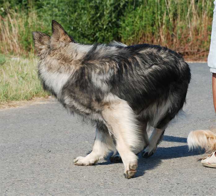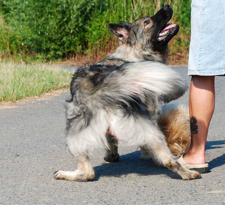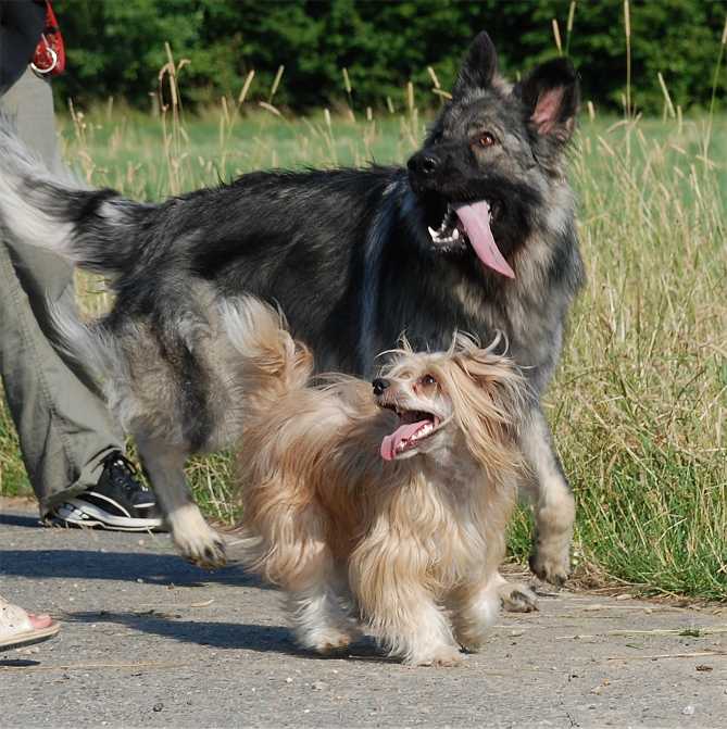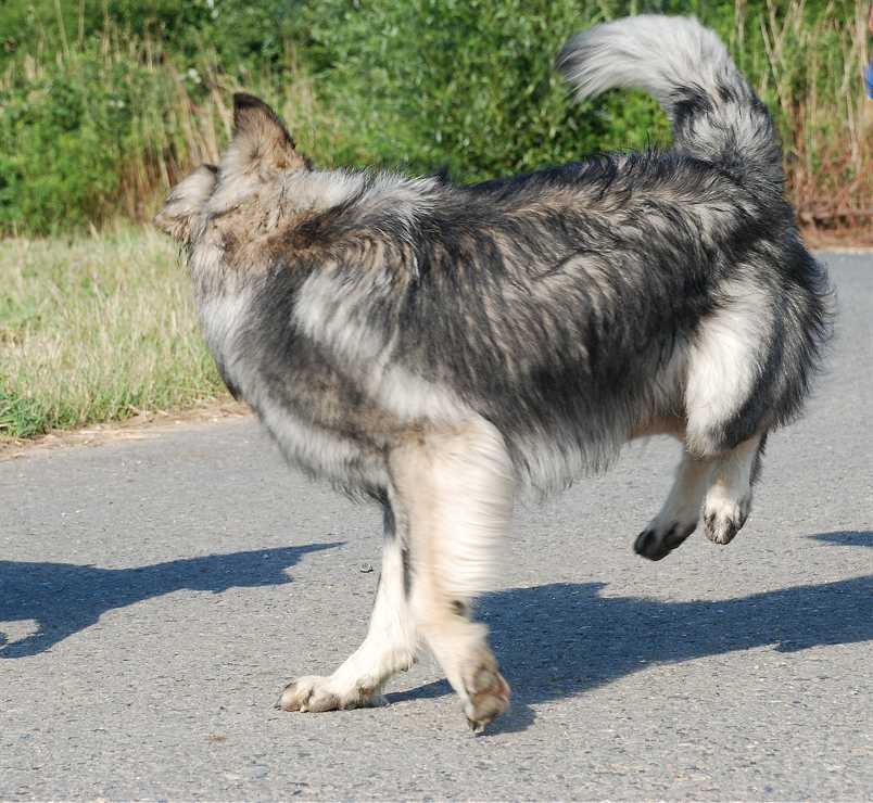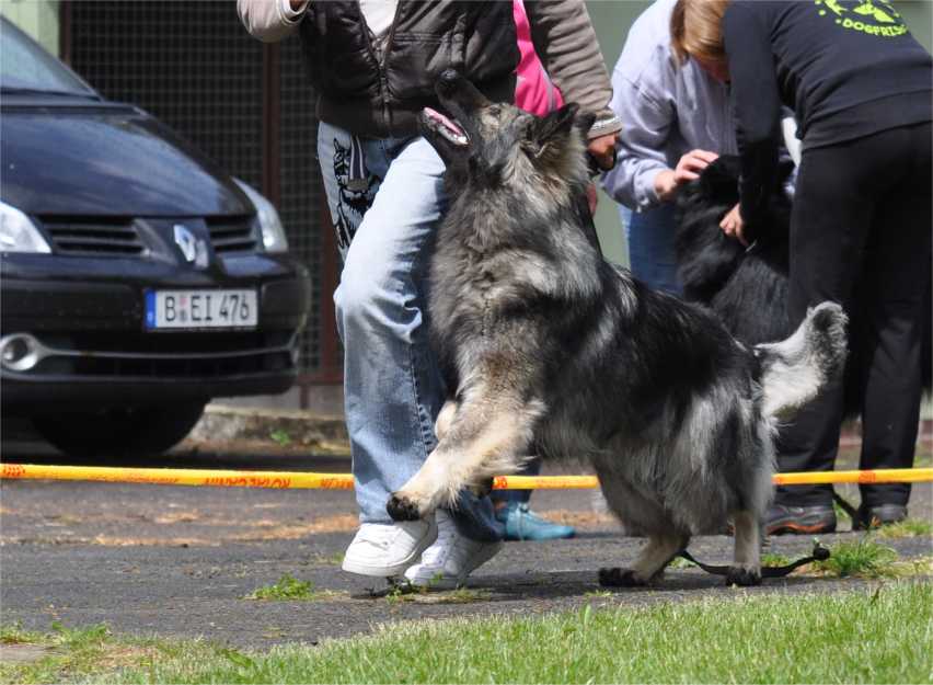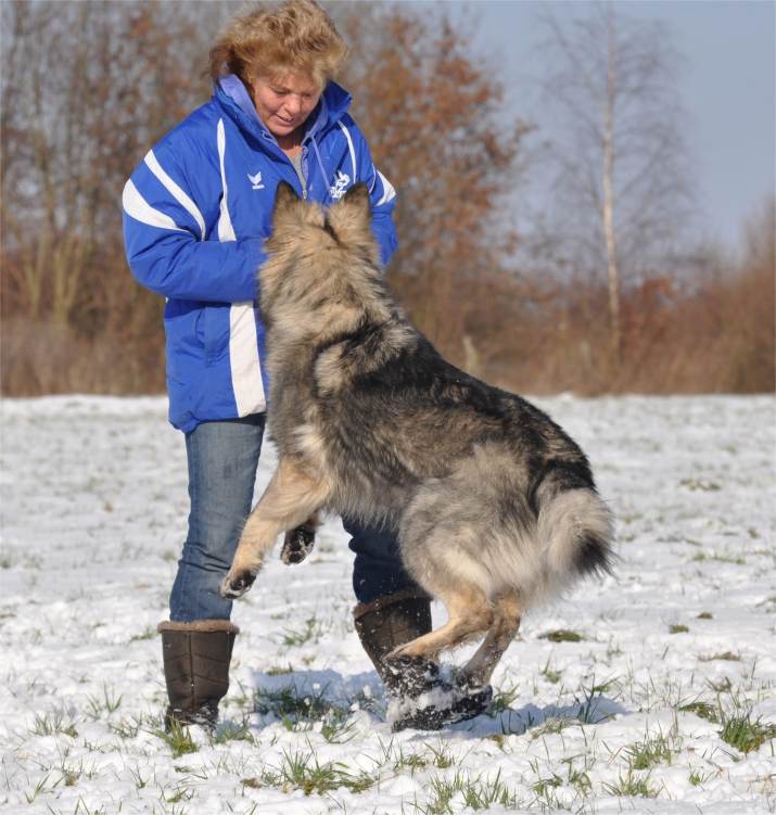 Lachen...Lachen.. Lachen... Ich habe nun Zeit gehabt, habe mit ihr gearbeitet (gespielt) und ihr Blödsinn beigebracht. Sie macht in Anlehnung an Dogdancing viele Kapriolen, sie will immer.... Mit Laetina arbeitet sie zusammen, leider geben diese Bilder das alles nicht wieder, ich sollte dazu mal ein Video machen, sie ist irre. Ich habe ihr gelehrt, das sie sich auf Handzeichen ´(hoffentlich synchron mit Laetina um sich selber drehen soll) Natürlich tut sie das... mit einer solchen Begeisterung, das sie mich regelmäßig von den Beinen haut... Erst den kopf in meine Beine rammen, beim Drehen versteht sich und dann unfairer Weise den Hintern eine 10tel Sekunde später vor dasselbe Bein.. Die blauen Flecke kann ich kaum noch zählen, die sie mir dabei verpasst hat, sie sitzt dann lachend vor mir und erwartet ihr Lob, ihr Bällchen und überhaupt will sie das ich mich mit ihr freue. Wir haben Bilder davon, aber ich weiß nicht, ob man das darauf erkennen kann?