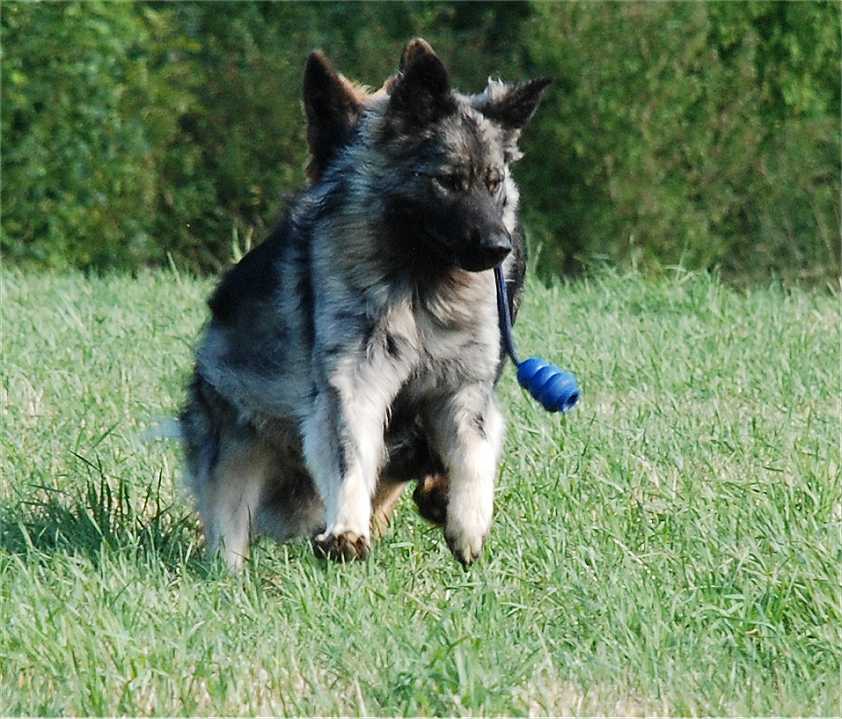 Chakana`s TAIFUN ... ihr Name ist definitiv Programm! Was soll ich über Kana sagen, da weiß ich überhaupt nicht, wo ich anfangen soll? Sie ist so vielschichtig, das mir bei Kana durchaus zwischendurch mal, die Luft wegbleibt. Dieser Hund ist mit einem Wort...verrückt...! Jeder der sie bisher kennen gelernt hat wird das bestätigen können, auf der einen Art ist sie aufdringlich und total unverschämt, immer voll Blödsinn, der an jedem Menschen passend ausprobiert werden muss, auf der anderen Seite ist sie, megafreundlich, verspielt, drängelt sich immer in den Mittelpunkt und für ein Leckerli macht sie notfalls auch einen Kopfstand. Aber... trieblich ist sie enorm hochgefahren, manchmal kaum zu bremsen, jagt sie kopfüber einen Abhang runter und... vergisst auch schon mal ganz einfach zu bremsen! Im Augenblick ist bei uns auch eine Art Ausnahmezustand... alle Hündinnen sind in der Hitze... Die Rüden laufen zu Hochform auf und ich krieg so langsam Zustände :-( Ich hoffe daran liegt es auch, das Kana sich zur Zeit mit Dakota nicht so gut versteht?! Sosehr Kana eine rundum zufrieden und freundliche Persönlichkeit ist, so sehr hat sie auch einen starken Willen, und wenn dann noch Ball oder anderes dazu kommt..... Ohne jede Reizlage ist es kein Problem, aber... sie kann übel hochfahren und Dakota lässt sich ihre Übergriffe auch nicht mehr so ohne weiteres gefallen. Nun, ich arbeite daran, verstärke Chakana`s Gehorsam und hoffe das die Zeit vorbei geht, wo alle so kribbelig sind. Ach... ich war auch mit Kana nun zum Röntgen :-)) Sie ist top in der Hüfte und in den Ellbogen .. der Rücken ist ebenfalls super! Auswertung vom ZBA HD und ED Frei Nun aber... die neuesten Bilder von unserem Taifun ... Chakana..