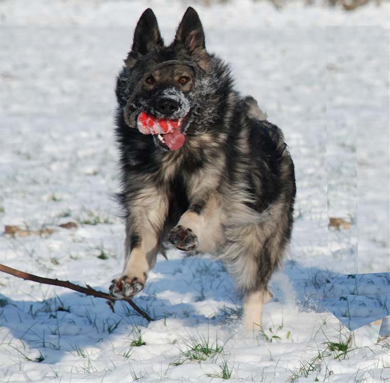 Chakana im Dezember 2010 unsere verrückte Ulknudel, nach wie vor kann sie niemand von meinen anderen Hunden toppen. Sie ist immer in vorderster Reihe zu finden, sie gibt immer alles was sie hat. Ihr solltet sie mal sehen, wenn sie mit den anderen um die Wette rennt. Chakana ist durch und durch sehenswert. Gestern hat es mega viel geschneit und ich war mit den Hunden unterwegs, leider war es schon fast dunkel so das ich davon keine Fotos habe, aber Chakana ist ja auch immer für irgendwelche Stunts berühmt/berüchtigt... Jedenfalls war unter dem Schnee Eis... und alle Hunde machten einen Bogen drum, außer ... Chakana... Sie ist mit unglaublicher Geschwindigkeit über diese Eisfläche gerast, war fast drüber, ich brauche schon wieder nen Friseurbesuch, zwecks entfernen der nächsten 100 grauen Haare, auf dem letzten Meter rutschte sie dann doch noch und flog lang, mit dieser Affengeschwindigkeit die sie drauf hatte, auf die Seite .. rutschte wie ein Kreisel, natürlich mit 4 strampelnden Beinen weiter, zeitweise auf den Schultern und zeitweise ohne Scherz... auf dem Kopf und wieder auf der anderen Seite, weil.. sie ja schließlich zudem auch noch mit aller Macht wieder auf die Füße kommen wollte... Das sah und war einfach atemberaubend abenteuerlich aus .... kommt endlich wieder auf ihre Pfoten und rennt ohne auch nur eine halbe Sekunde innezuhalten weiter. Ich hatte Stehhaare, mein Chakana hatte nix....