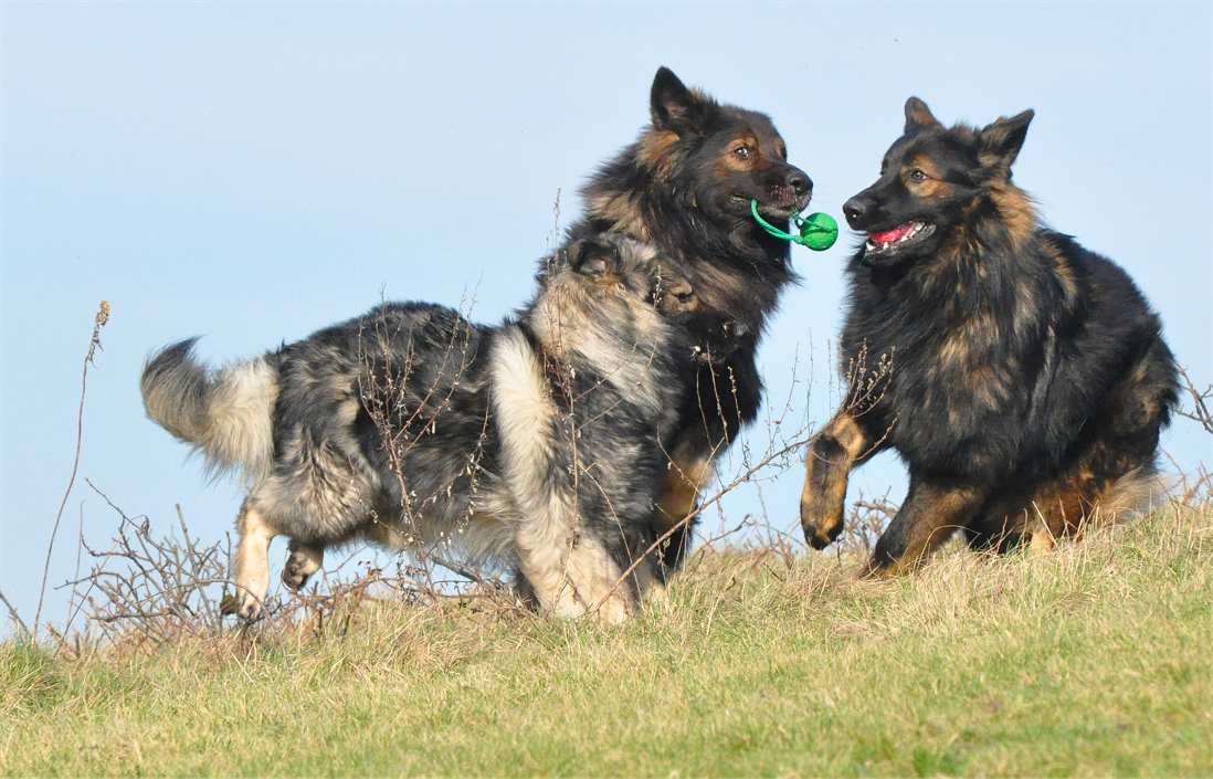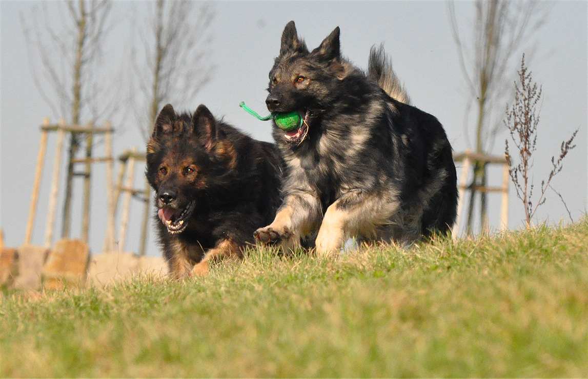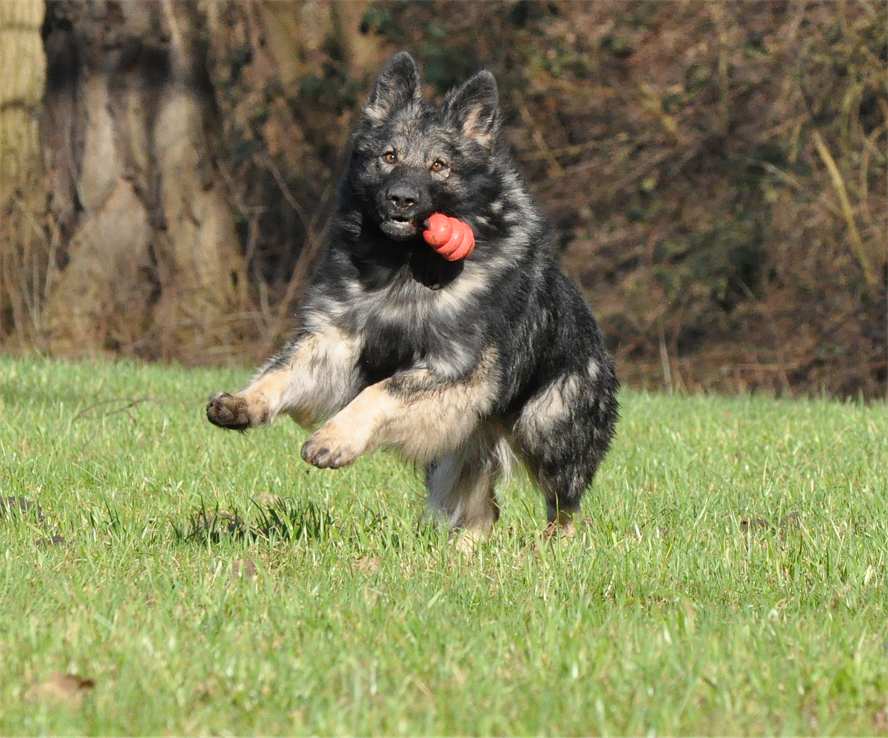 Kana ist ein Hund bei dem ich immer ins Schwärmen gerate, aber wenn ich an ihre erste Zeit denke, dann wird mir wirklich ganz anders. Meine Güte war dieser Hund suizidgefährdet... Kein Berg war ihr zu hoch und leider auch nicht zu tief, Wasser .. egal.. man MUSS doch darauf laufen können.. Ein Graben... springen... quatsch.. muss man nicht.. bis sich dann die Nase in den gegenüberliegenden Erdhügel bohrt... Menno.. was hab ich über sie gelacht, und graue Haare hab ich genauso bekommen.. Mehr als einmal hab ich gedacht, sie bricht sich das Genick... Aber Kana stand immer wieder unversehrt auf.. bis auf einmal, da hat sie auch "vergessen" das man .. wenn man einen Hügel runterrennt auch irgendwann bremsen sollte.. wenn man da nicht bremst und die Geschwindigkeit von Michael Schuhmacher toppen will und dann ist der Hügel plötzlich und unerwartet zu Ende... dann rasselt man zusammengeschoben auf den Asphalt... Ich dachte wirklich das war es jetzt.. da war sie noch keine 6 Monate alt. Aber.. sie hatte sich nur die Schulter geprellt.. humpelte pflichtschuldigst ein paar Tage, aber gelernt hatte sie zunächst mal nichts daraus... Auch jetzt ist sie noch irre.. Aber erzogener... und das setzt sie genauso um wie im Vorfeld ihr verrücktes ungebremstes Temperament. Genauso wie sie den Hügel runterrast, so arbeitet sie nun mit mir... konsequent und durch nichts lässt sie sich ablenken. Nur wenn einer der anderen Hunde ihren Ball hat, das kann sie überhaupt nicht ausstehen :-) Nun hat sie verstanden, das sie nicht einfach hingehen darf und sich den Ball wieder nehmen kann. Also... wird jetzt gegrabscht was das Zeug hält, und das absolut konsequent, selbst Wotan gibt irgendwann auf...... Kana hängt an der einen Seite am Ball und Wotan an der anderen...Aber... Kana bekommt irgendwann den Ball... Sie lässt nicht los :-) Ich habe unendlich viele Fotos gemacht, aber es sind immer mehrere Hunde darauf zu sehen, also habe ich gedacht, mache ich hier nur ein paar rein, mache aber in den nächsten Tagen eine neue Seite von allen Hunden zusammen. Also schaut öfter mal unter "Sehenswert" nach! Aber nun erst mal ein paar ...normale .. Fotos von Chakana`s Taifun!!!!