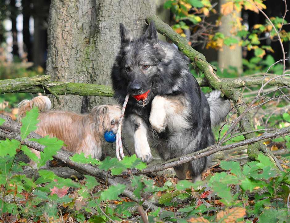 Sie hat Wotan den Ball geklaut und rennt so schnell sie kann :-) :-)