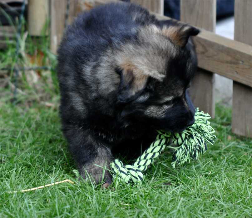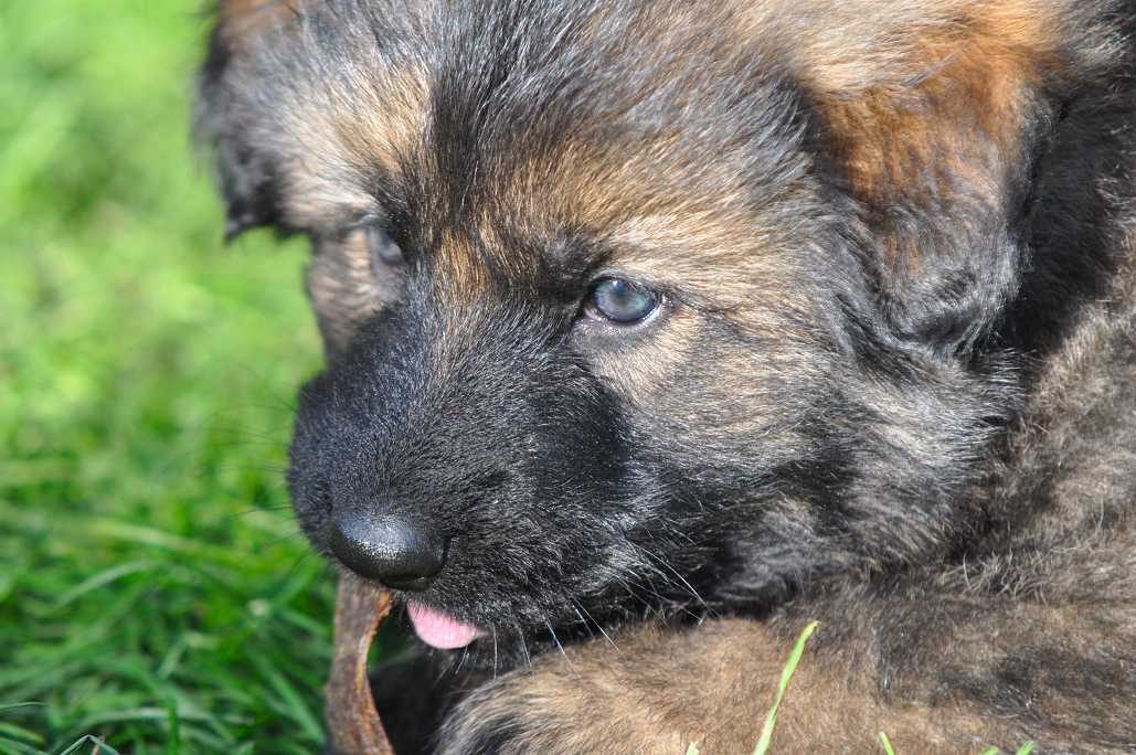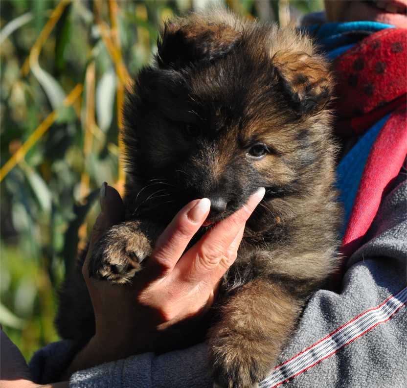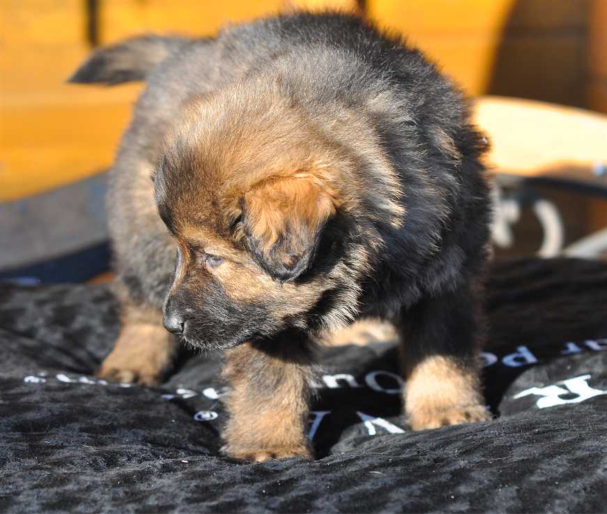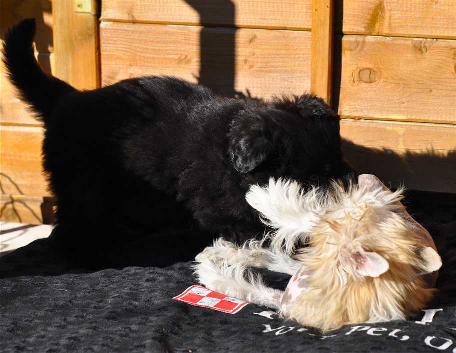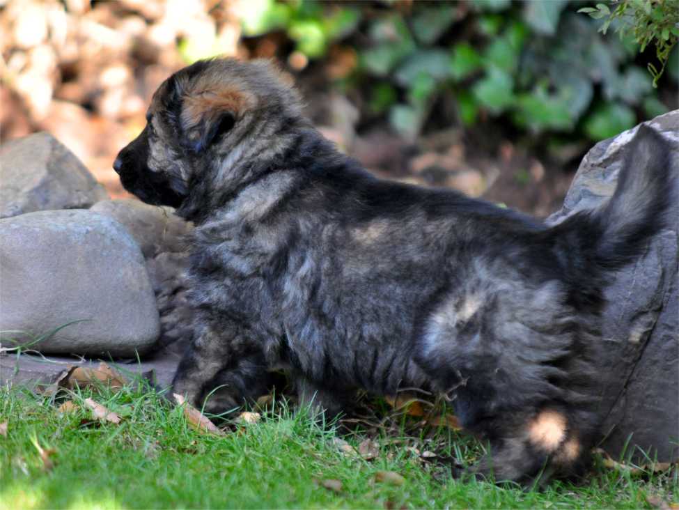 Asgad, leider auf den Fotos nicht wirklich richtig darstellbar, er hat viel mehr Fell, einen breiten und sehr kräftigen Kopf und einen sehr kurzen Fang. Asgad ist ein Hund der weiß was er will, er verteidigt sehr gut und setzt sich deutlich durch. Ein Hund der sicher gut zu arbeiten ist, und ein sehr auffälliger kleiner Burche!