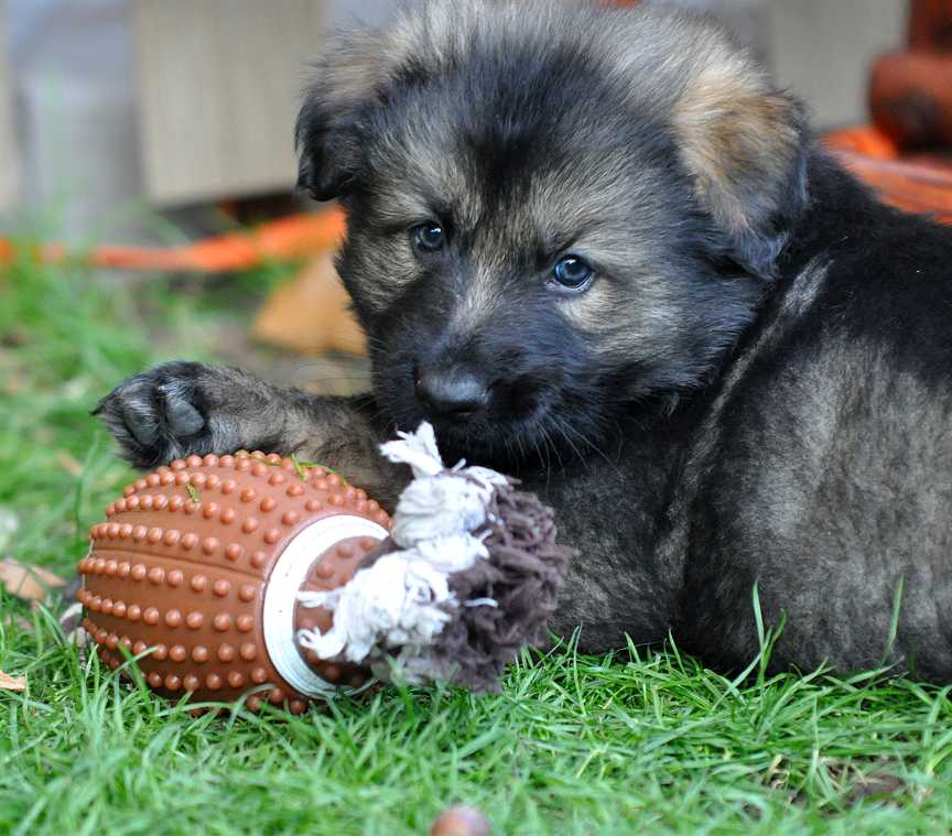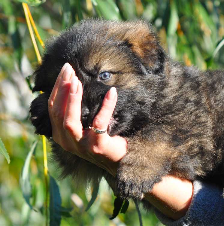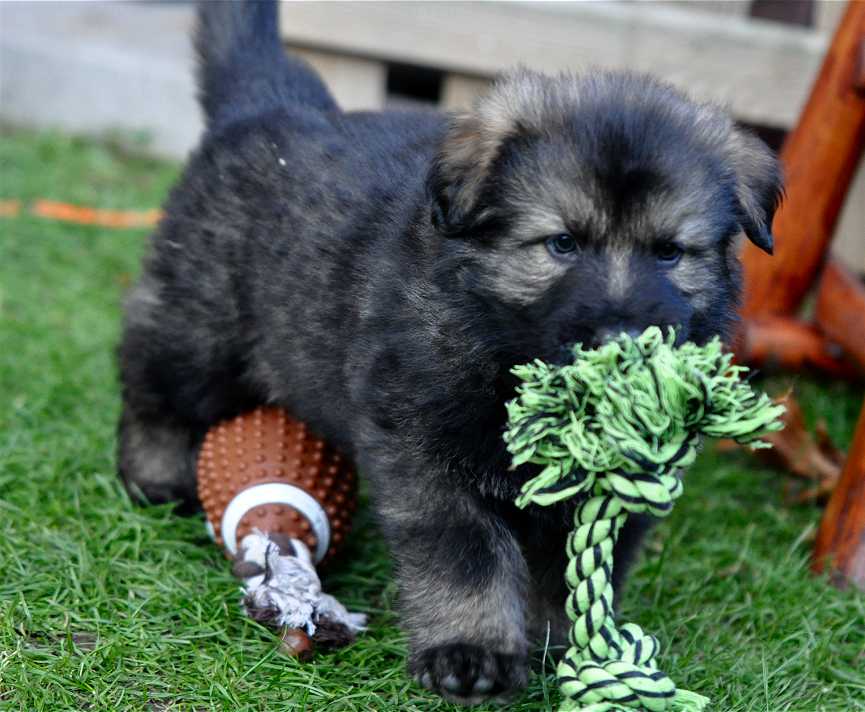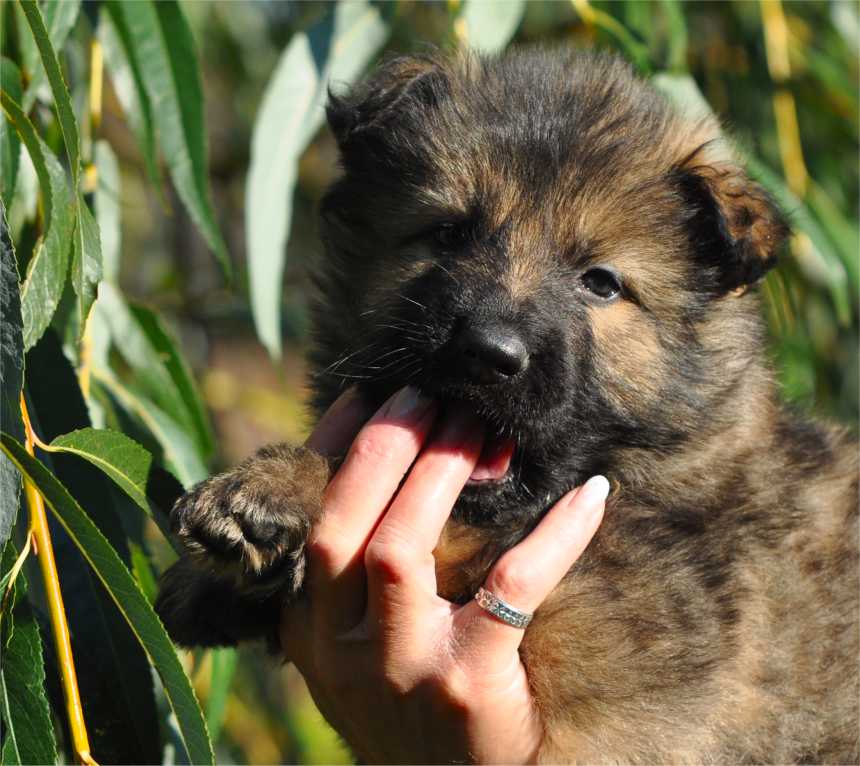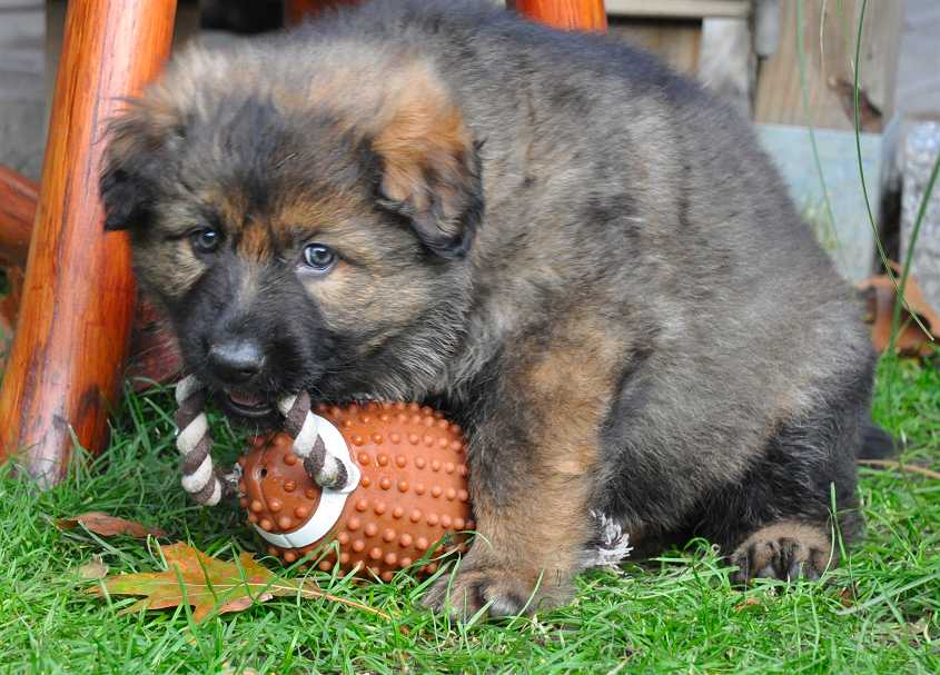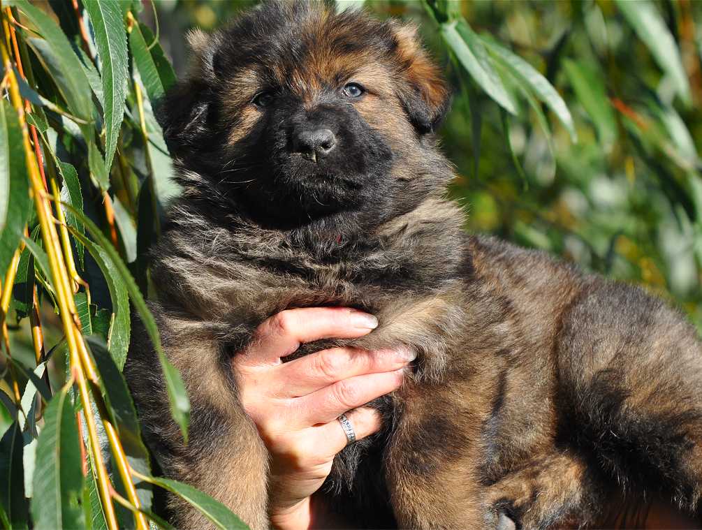 Asgad, leider auf den Fotos nicht wirklich richtig darstellbar, er hat viel mehr Fell, einen breiten und sehr kräftigen Kopf und einen sehr kurzen Fang. Asgad ist ein Hund der weiß was er will, er verteidigt sehr gut und setzt sich deutlich durch. Ein Hund der sicher gut zu arbeiten ist, und ein sehr auffälliger kleiner Burche!