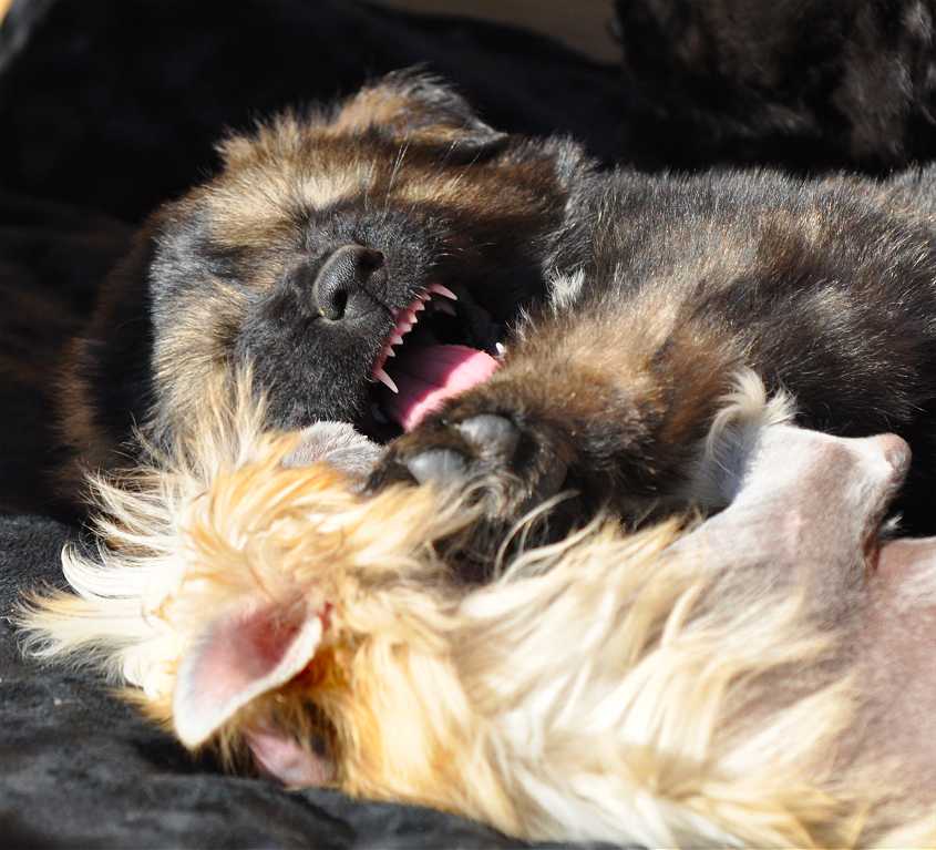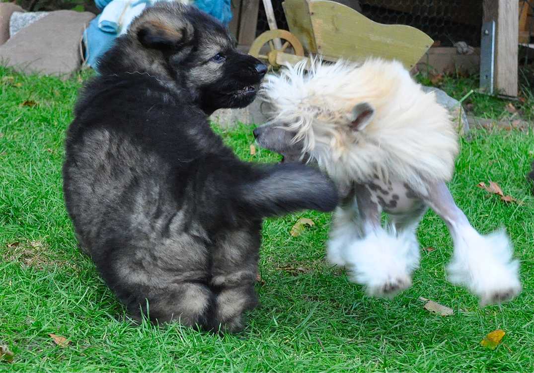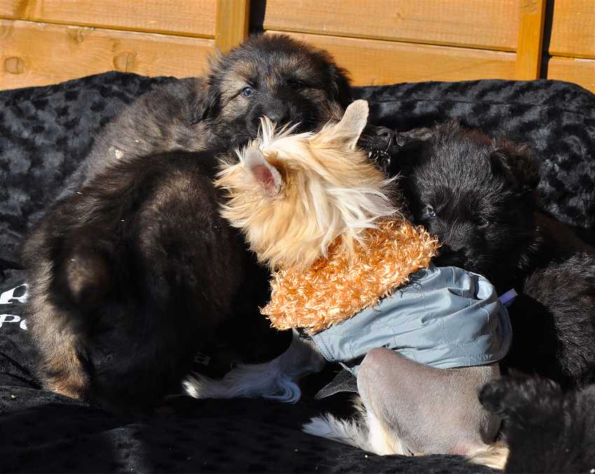 Jupp....das war man ein Fehler :-) Ne Jacke an den Chinesen gepackt.. gar nicht gut... In Nullkommanix... hatten die Welpen den ausgezogen und in kleine handliche Stücke zerlegt :-)