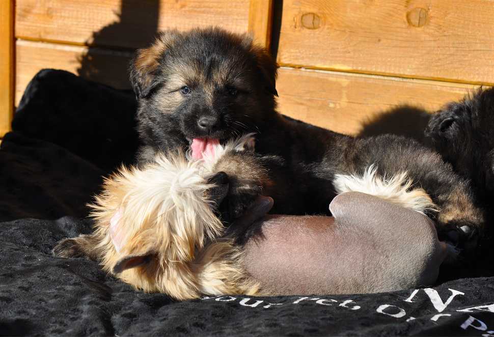 Unserer kleiner Ninja, der kleinste aber mal nicht zu unterschätzen, mutig ist er und lässt sich nichts gefallen. Alles... Meins.. sagt er und verhaut locker mal eben Kazan der seine vorwitzige Nase in Ninja`s Schweineohr steckt. Ein Hund der zu allen Späßen bereit ist, sehr menschenbezogen und sicher. Ninja ist immer an vorderster Front zu finden.