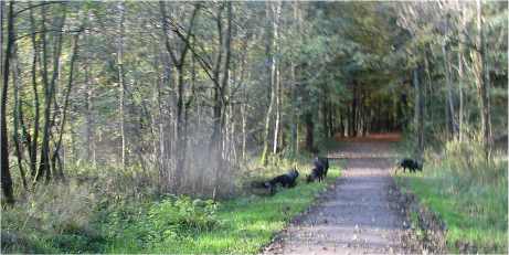Die Hunde rannten.........nach links! (wo Karin hockte!) Es kam, wie es