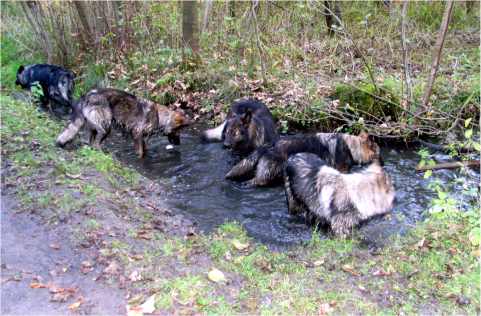 Karin und ich ließen Wotan, Jessy, Snake, Lobo und Shandar aussem Bus