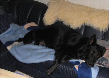 (Anmerkung Karin) Jess ist wohl um Längen ausgeschlafener als ich, so zwischendurch hechelt sie ein paar mal pflichtschuldig, ich springe dann jedesmal von der Couch hoch, auf der ich versuche zu schlafen, nur um mich 2 minuten später wieder anzugrinsen, und doch noch mal nachzufragen ob es nicht noch eins von den tollen Leckerlis gibt :-) Ihr geht es supergut, (mir nicht, ich bin müde) und Jess hat noch definitiv keine Lust mit der Geburt anzufangen :-)