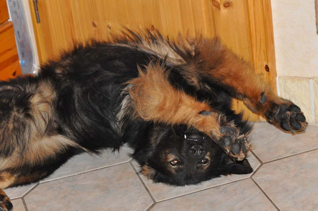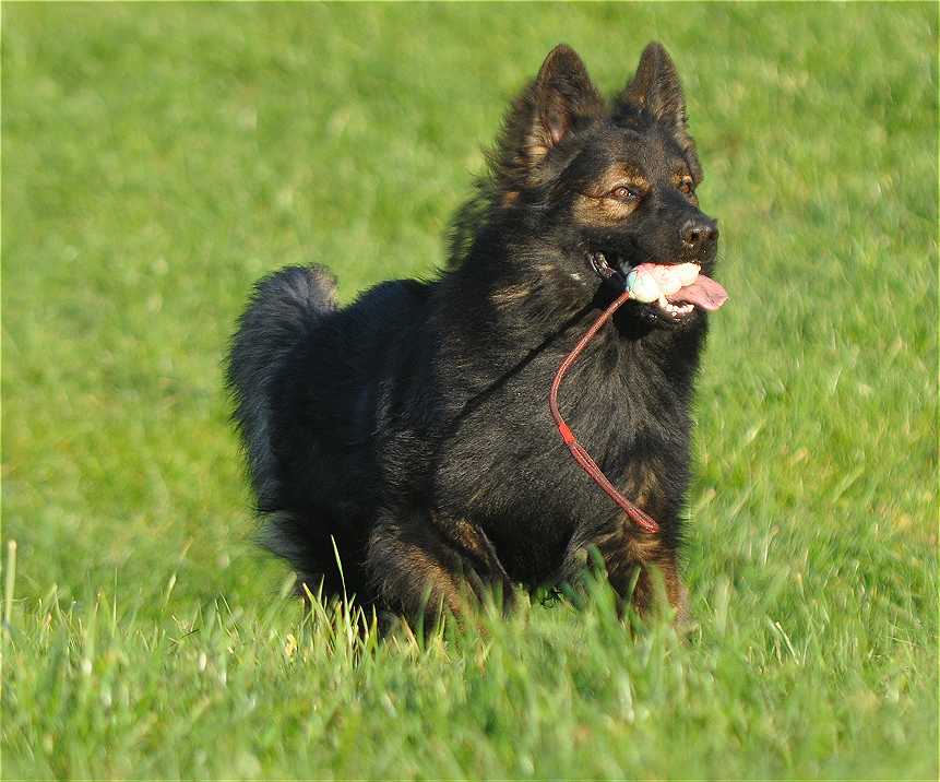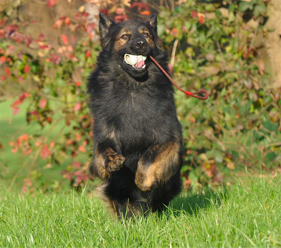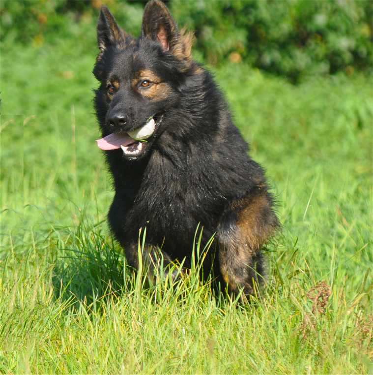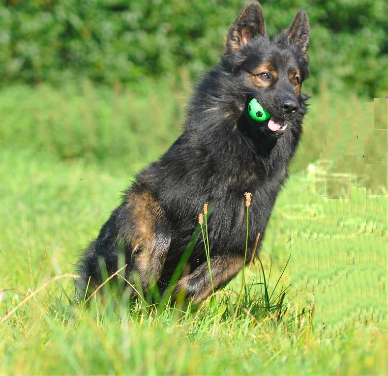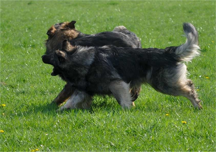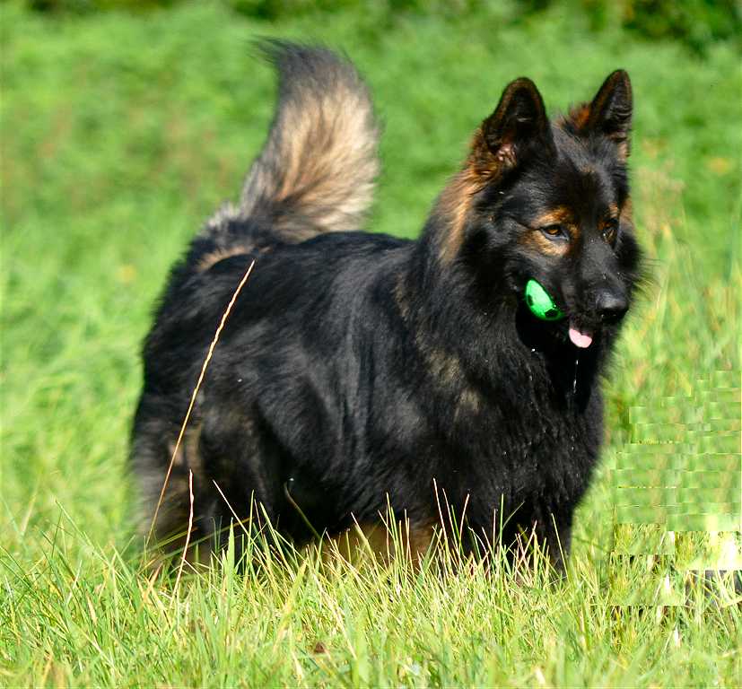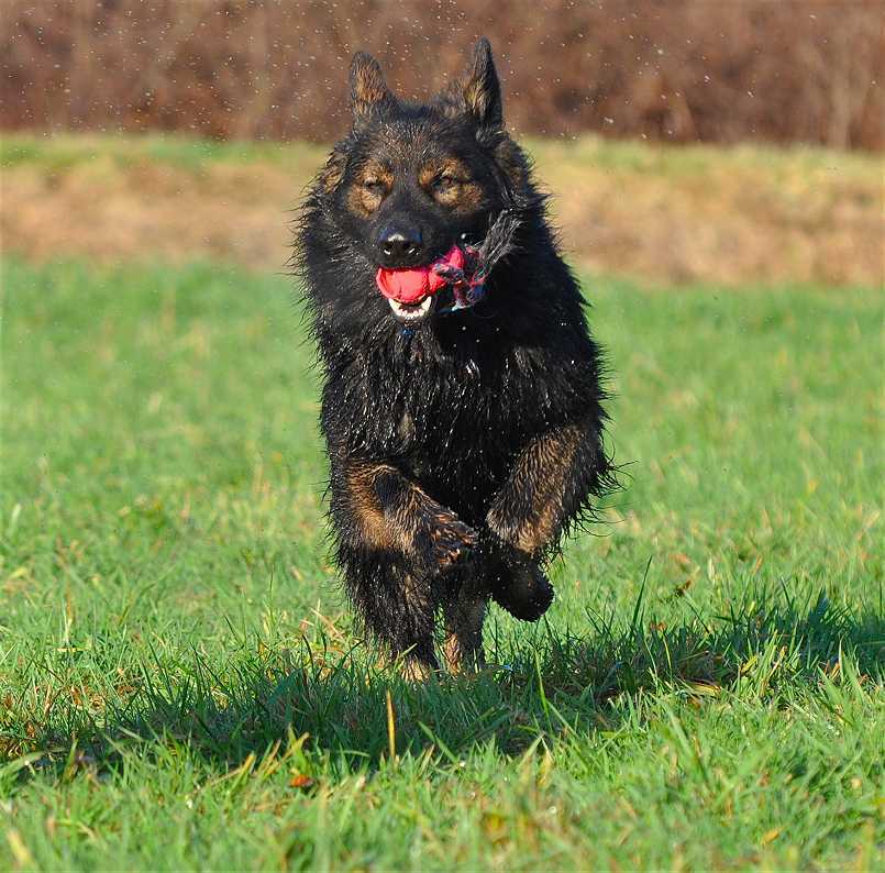 Uns Conan :-) Conan unser Ossi Jammerlappen wie er mit seinem heimlichen Zweitnamen heißt. :-) Den Namen hat er bekommen, weil er beim Kämmen und wenn er mal im Eifer des Gefechts (hinter Chakana herrennen) sich vertreten hatte und dann immer Jammernd und erzählend wie schlecht es ihm doch gerade ergeht, zu Frauchen gerannt ist. Nun das ist lange her und unser Conan ist langsam ein Hund, ein überheblicher und arroganter dazu. Er ist nun gerade ein Jahr alt geworden und wird sicherlich noch dunkler und auch noch einiges schwerer werden. Mit Wotan und den anderen verträgt er sich ausnahmslos, fremde Hunde werden in der Regel ignoriert, aber wenn sie ihm dann zu nahe kommen und ihm eventuell auch noch seinen Ball streitag machen wollen, versucht er deutlich zu erklären das er schließlich mal ein gaaanz Großer wird. :-) Übrigens meist mit Erfolg, bei diesen Aktionen muss ich immer lachen, weil er dann die Rute ganz hoch nimmt und wirklich "arrogant" mit seinem Ball davon schlendert ... Nun, er ist zur Zeit ein wirklich guter Junghund, der mich oft zum Lachen bringt, Wotan ist sein großes Idol und das ist auch gut so. Wir werden sehen wie er sich weiter entwickelt.