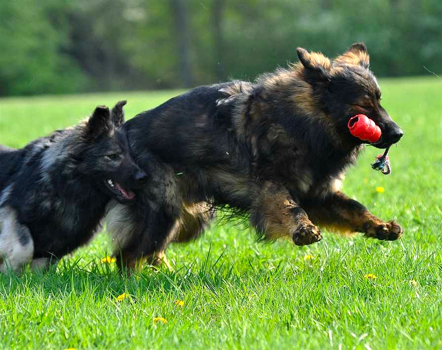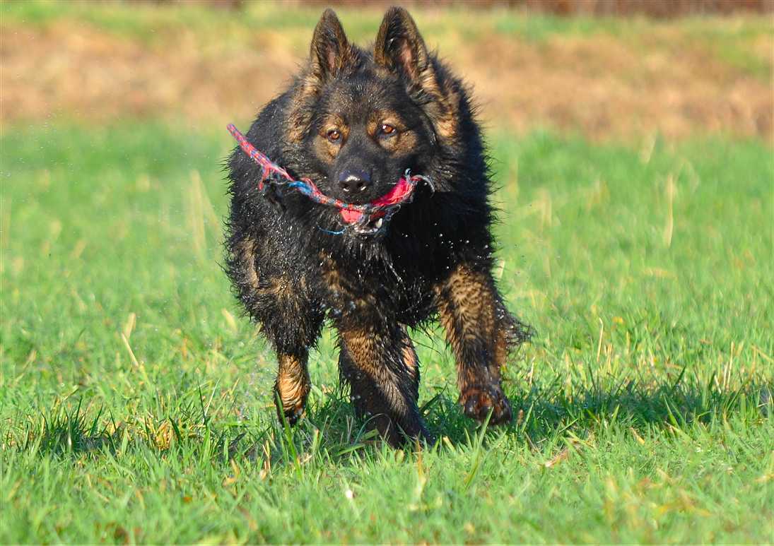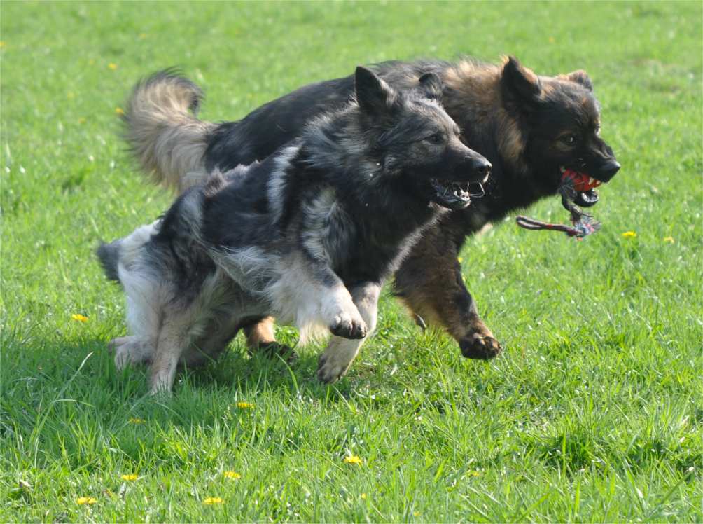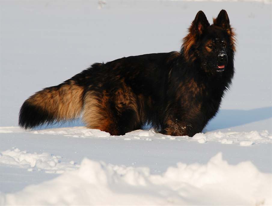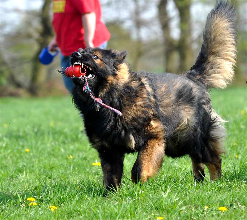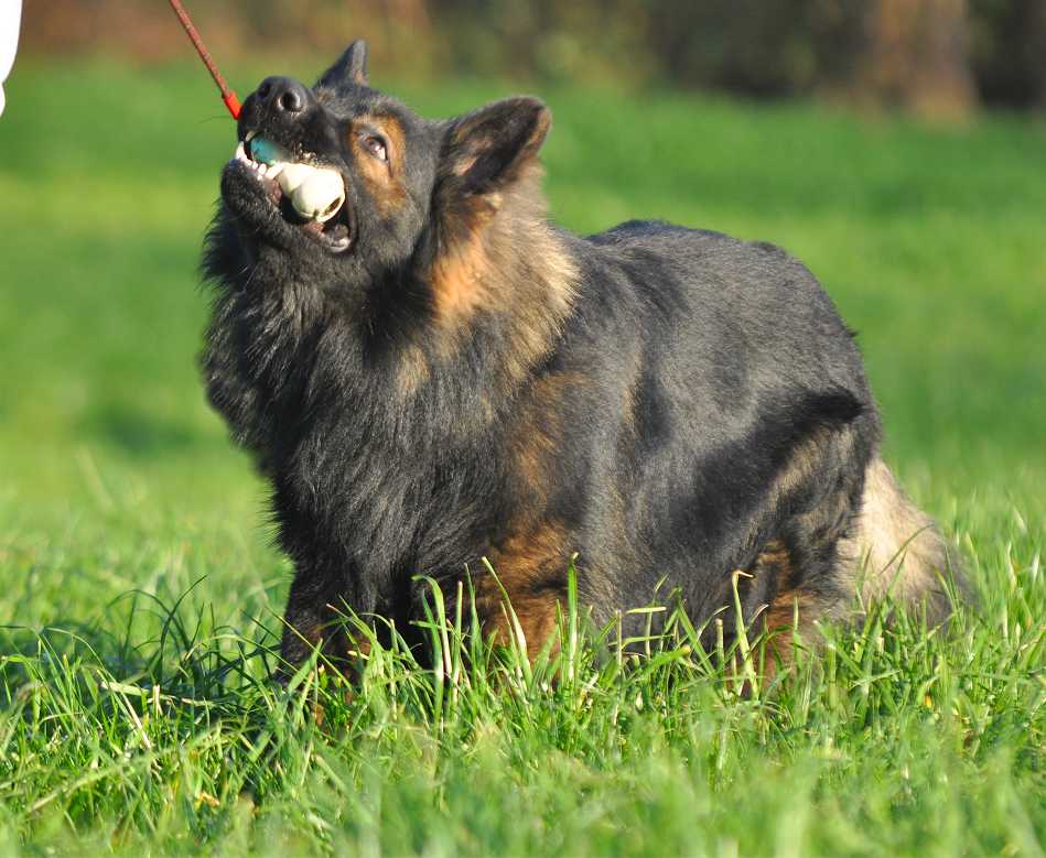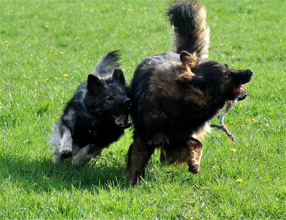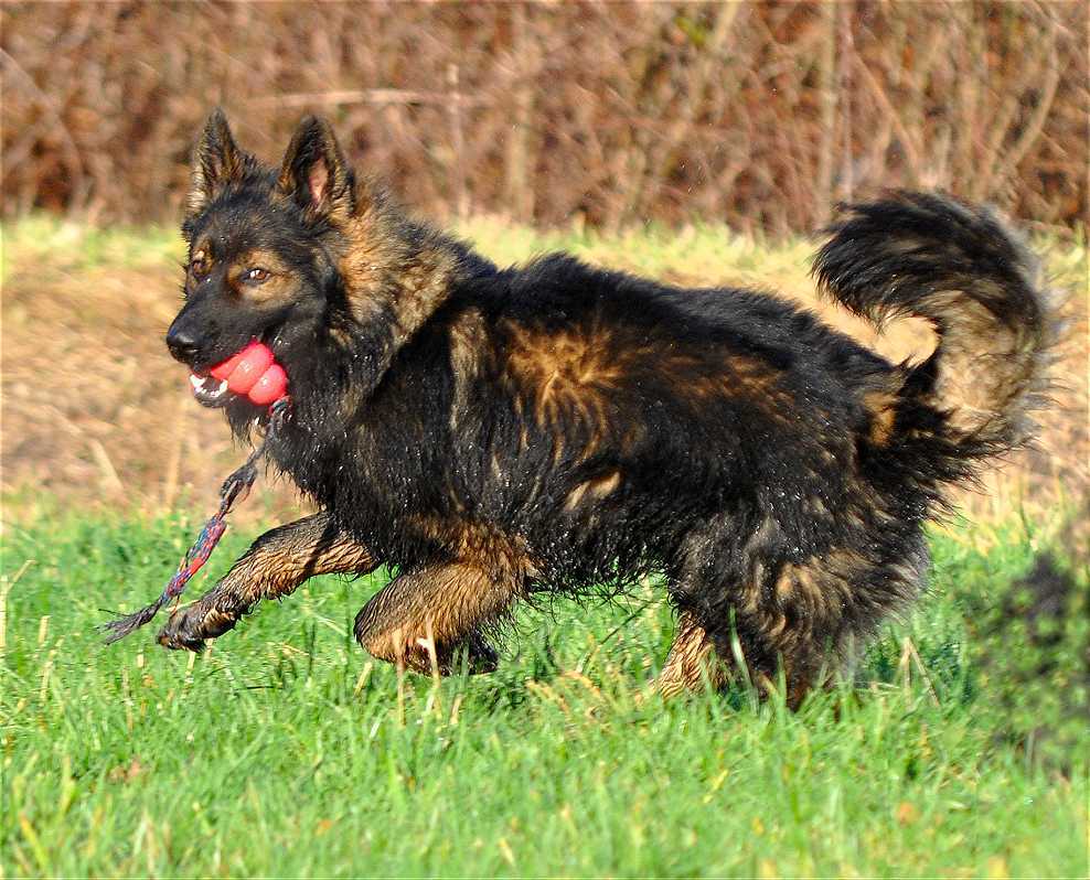 Uns Conan :-) Conan unser Ossi Jammerlappen wie er mit seinem heimlichen Zweitnamen heißt. :-) Den Namen hat er bekommen, weil er beim Kämmen und wenn er mal im Eifer des Gefechts (hinter Chakana herrennen) sich vertreten hatte und dann immer Jammernd und erzählend wie schlecht es ihm doch gerade ergeht, zu Frauchen gerannt ist. Nun das ist lange her und unser Conan ist langsam ein Hund, ein überheblicher und arroganter dazu. Er ist nun gerade ein Jahr alt geworden und wird sicherlich noch dunkler und auch noch einiges schwerer werden. Mit Wotan und den anderen verträgt er sich ausnahmslos, fremde Hunde werden in der Regel ignoriert, aber wenn sie ihm dann zu nahe kommen und ihm eventuell auch noch seinen Ball streitag machen wollen, versucht er deutlich zu erklären das er schließlich mal ein gaaanz Großer wird. :-) Übrigens meist mit Erfolg, bei diesen Aktionen muss ich immer lachen, weil er dann die Rute ganz hoch nimmt und wirklich "arrogant" mit seinem Ball davon schlendert ... Nun, er ist zur Zeit ein wirklich guter Junghund, der mich oft zum Lachen bringt, Wotan ist sein großes Idol und das ist auch gut so. Wir werden sehen wie er sich weiter entwickelt.