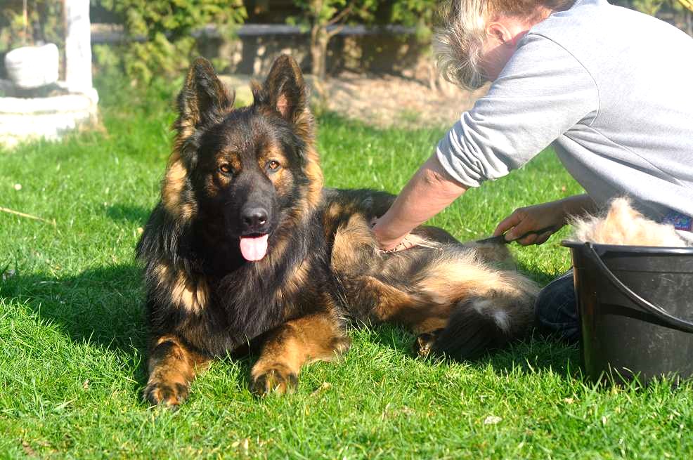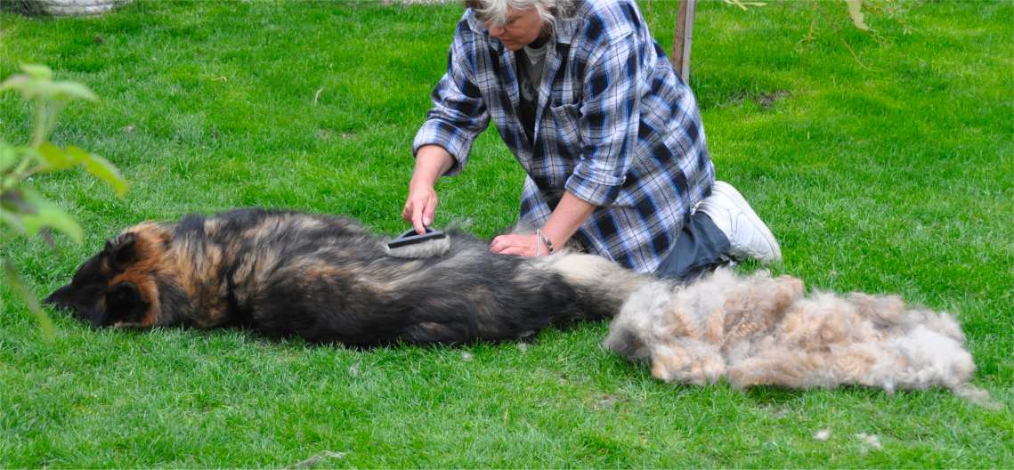 Nina hat das fotografiert und sich schiefgelacht, mein Gesichtsausdruck muss wohl Bände gesprochen haben :-( :-( :-( Conan haart runter... Sein Fell ist im wahrsten Sinne des Wortes...im Eimer... die Wärme und das Frühjahr.. er hat beschlossen ... Haare...Haare brauch ich nun nicht mehr! Übrigens nun kommt der nächste Schub, er wird nun noch einmal dunkler werden, das ganze rote Fell ist erst mal fast raus.