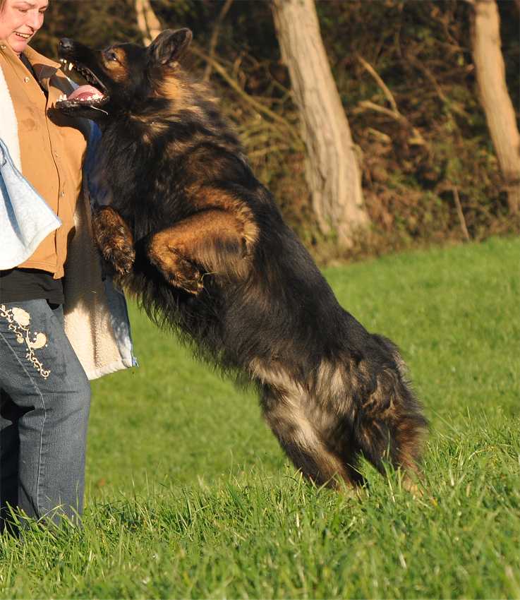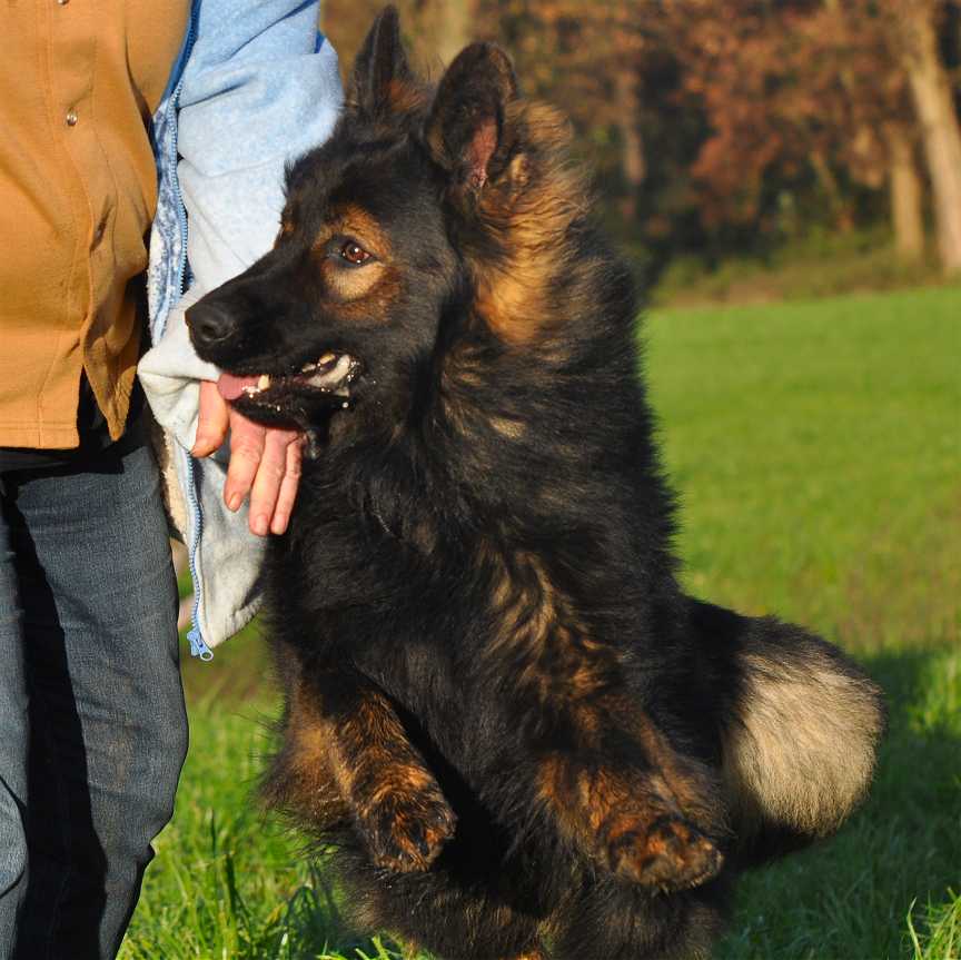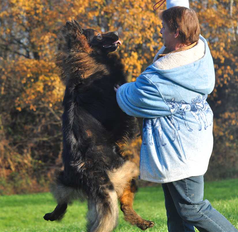 Conan ist auch ein Hund der sich selbst ein wenig ins Abseits schießt. Er ist umgänglich aber... nicht mit jedem... es gibt Menschen die lehnt er von Anfang an ab. Er ist ein ""Brummelkopp"" aber.. ach er ist schwer zu beschreiben, und eigentlich sagt man das ja auch nicht, jedenfalls kenne ich keinen der öffentlich sagt, mein Hund ist nicht mit allem "einverstanden" Aber bei Conan ist das so. Er mag auch nicht jede Hündin und auch nicht jeden Welpen, manchmal ist das schon etwas beschwerlich. Aber.. Conan ist ein Hund der vom Wesen her eben ein Osthund ist. Anders als meine, obwohl hier großgeworden und hier erzogen, ist und bleibt Conan ein Osthund. Für mich würde Conan alles tun, wir beide verstehen uns wirklich gut, er lässt sich super händeln, reagiert auf Blicke lässt sich leiten, und arbeitet sehr überlegt und sicher. Aber ich denke man kann sagen, er ist kein Anfängerhund. Er möchte schon gerne die Nr. 1 sein. Es fehlt ihm so ein bisschen das herzliche und überschwängliche was meine Hunde ausmacht. Conan muss immer erst mal gucken, und ...überlegen... :-) Trotzdem ist er ein guter Hund, finde ich, wenn auch....anders als meine :-)
