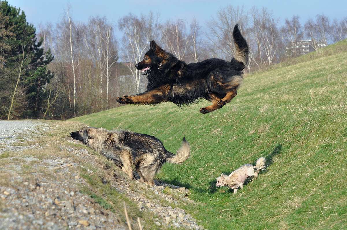 Conan ein unglaublich beeindruckender Hund. In seinem Wesen ist er inzwischen sehr gefestigt. Er ist souverän und wirklich aus jeder Situation sofort abrufbar. Seine Ruhe lässt in etwas arrogant und überheblich wirken, aber das scheint dann nur Außenstehenden so. :-) Seine Sprungkraft ist gewaltig und das Spiel mit den anderen spornt immer seinen Ehrgeiz an